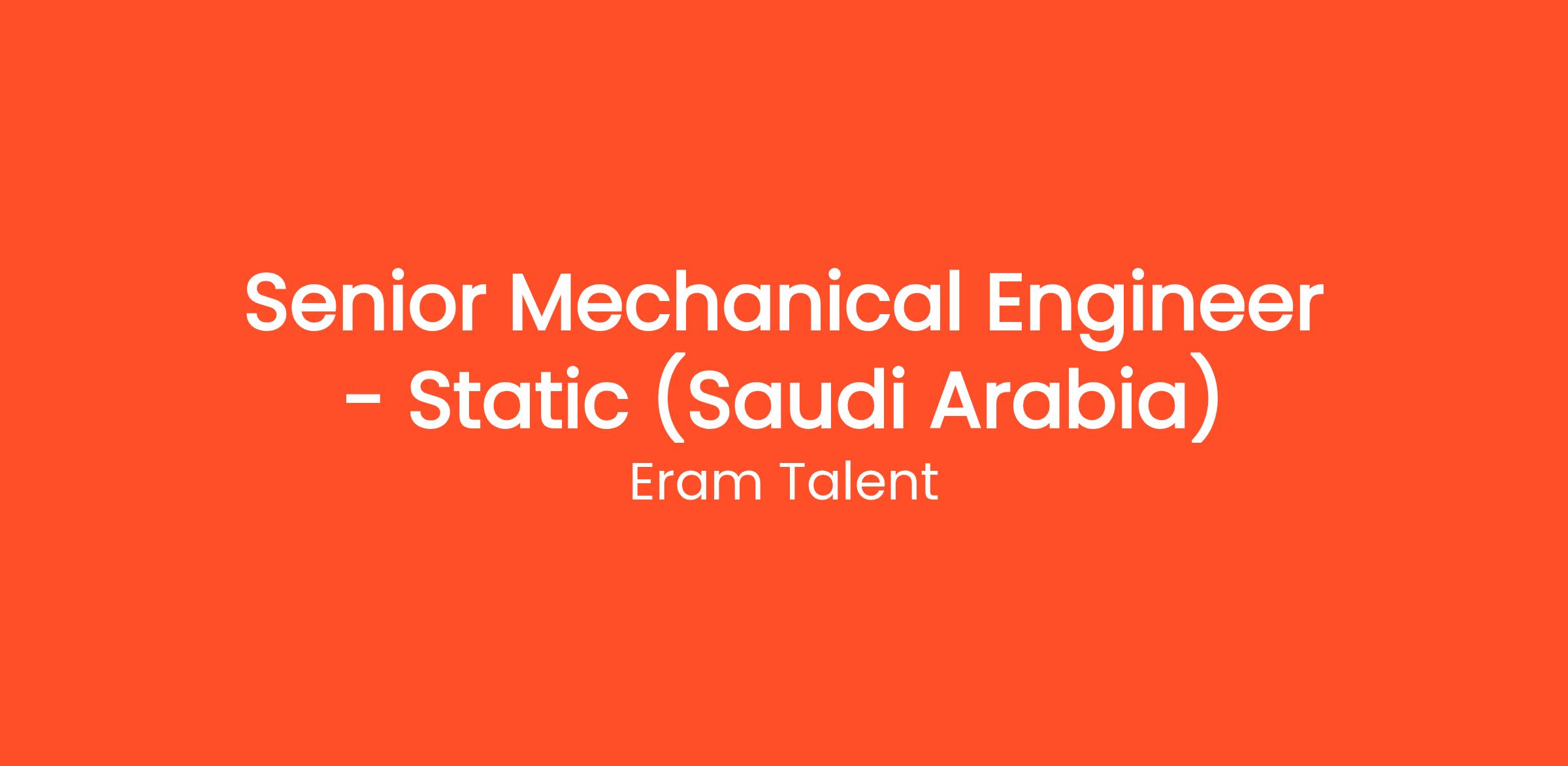 Eram Talent is on the lookout for a skilled and dedicated Senior Mechanical Engineer - Static to enhance our team in Saudi Arabia. As a premier Talent Acquisition Consultancy, we pride ourselves on connecting top talent with leading organizations across various sectors, including Oil & Gas, Infrastructure, and Energy.