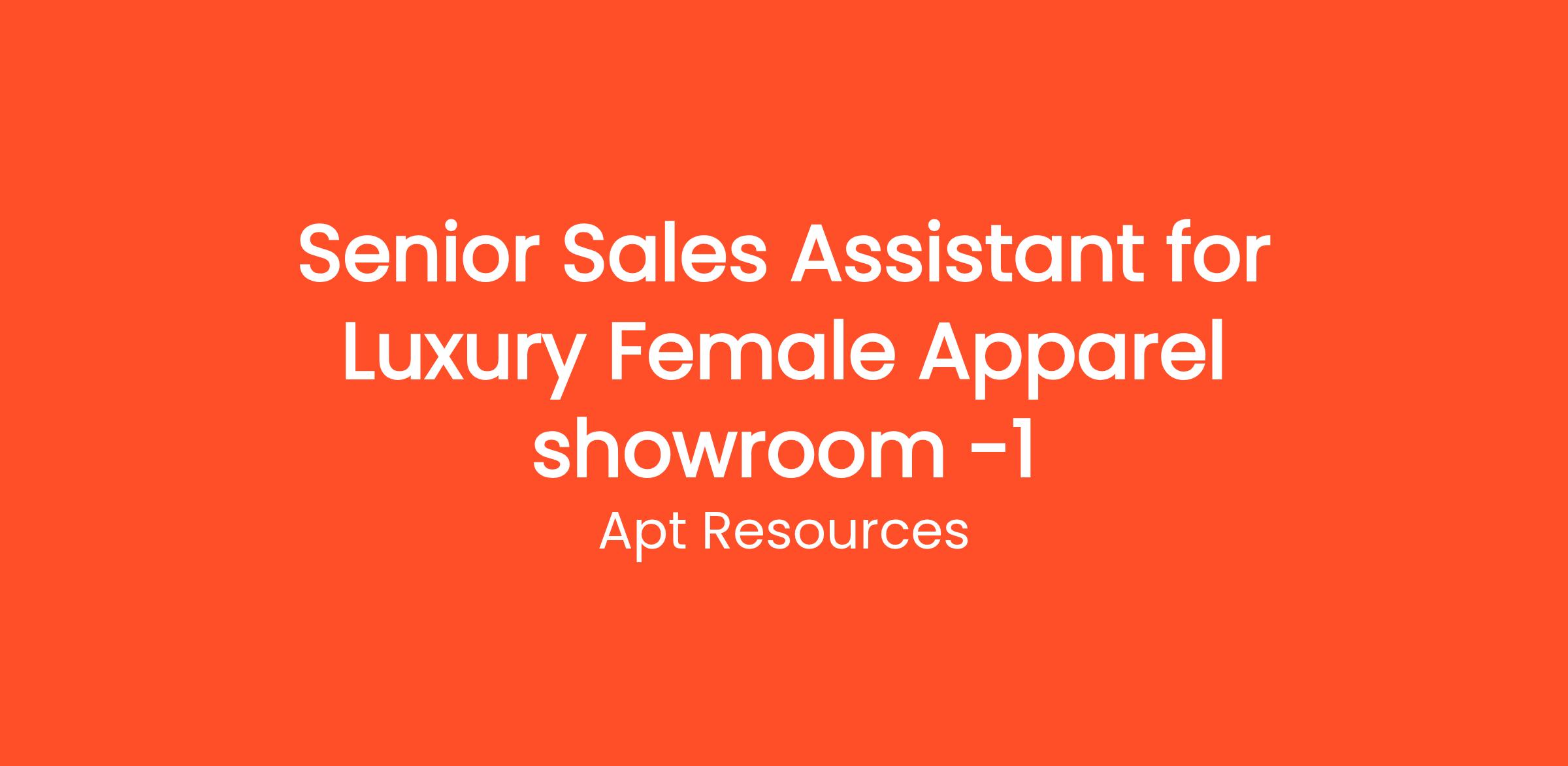 Apt Resources is excited to announce an opening for a Senior Sales Assistant at a prestigious luxury female apparel showroom in Fashion Avenue, Dubai Mall. This is a fantastic opportunity for an experienced sales professional who is passionate about fashion and has a knack for providing exceptional customer service. In this role, you will be responsible for driving sales, building customer relationships, and contributing to a luxurious shopping experience for clients.