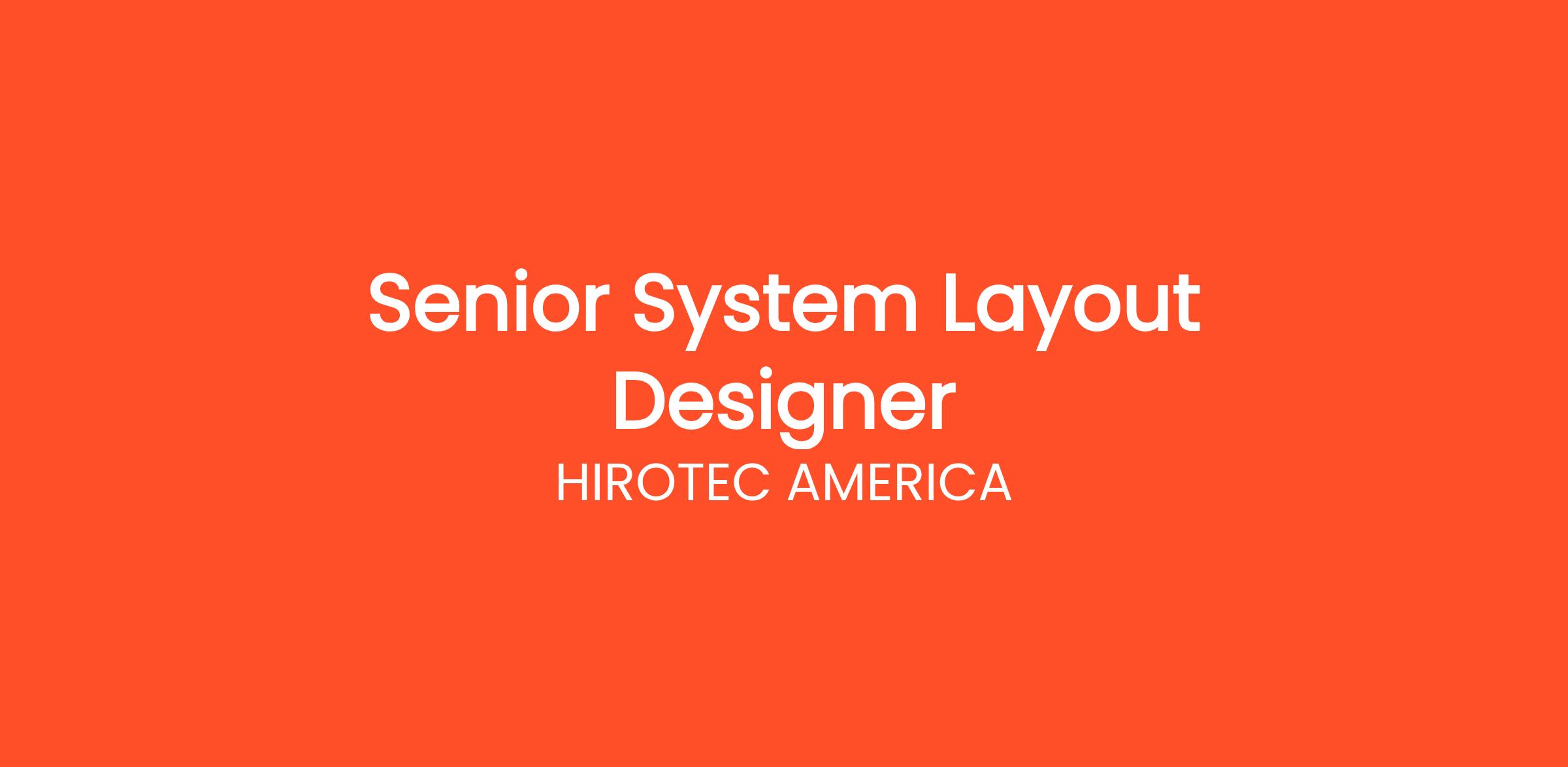 Currently, we are seeking a Senior System Layout Designer to become a part of the HIROTEC AMERICA, Inc. team.