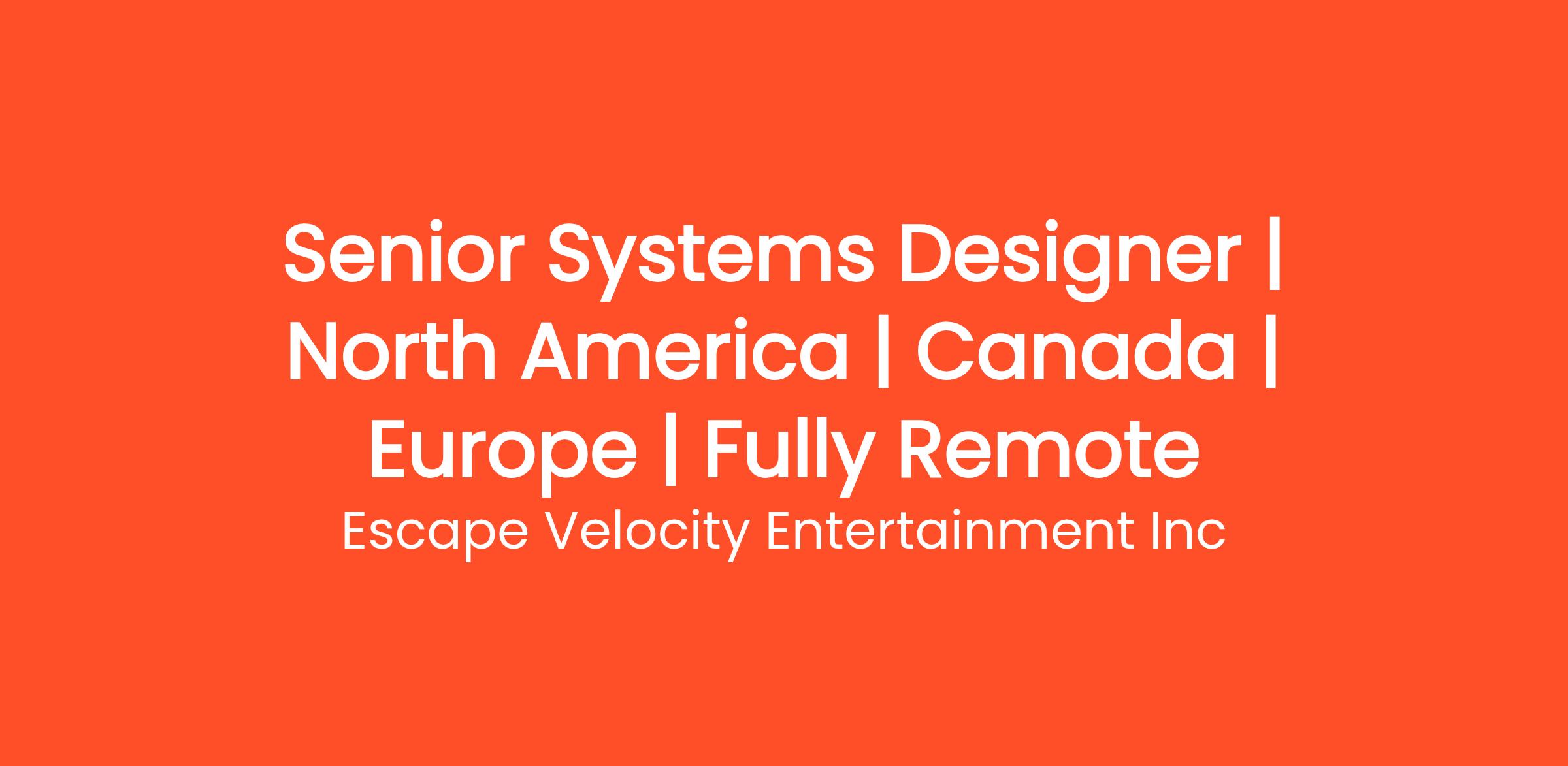 Escape Velocity is looking for an experienced Senior Systems Designer. You are the junction point of multiple design disciplines, the holder of a cohesive vision, strong analytical skills, and the ability to interpret large amounts of data and determine the right knobs to turn to give players a fantastic metagame experience. Your Excel knowledge is strong, your multiplayer systems design is top notch, and your understanding of major game systems is unparalleled. You are exactly the designer we need for an exciting new AAA IP at Escape Velocity Entertainment.