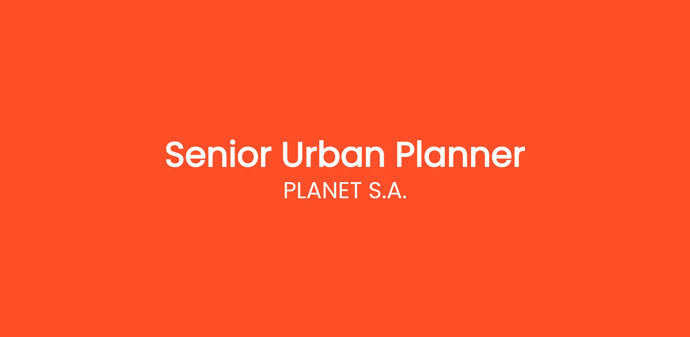 Η PLANET S.A., κορυφαίος Όμιλος συμβουλευτικών υπηρεσιών, με μακρόχρονη παρουσία στην ελληνική και διεθνή αγορά, αναζητά να εντάξει στο δυναμικό της έναν φιλόδοξο επαγγελματία ως Senior Urban Planner.