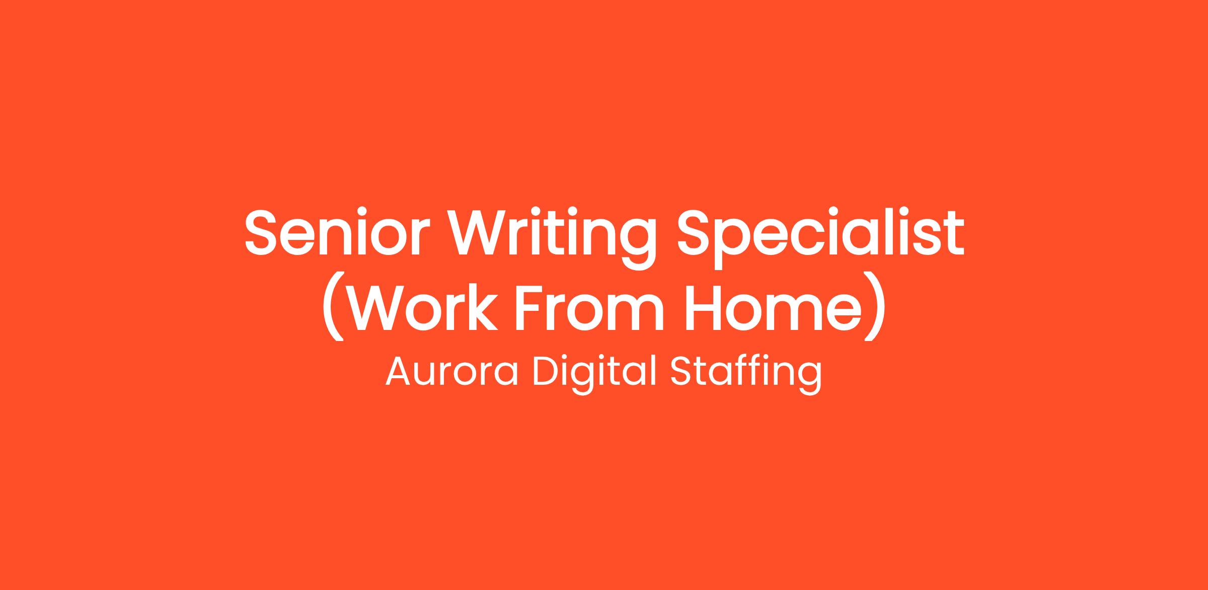 The Role: Senior Writing Specialist (Work From Home)