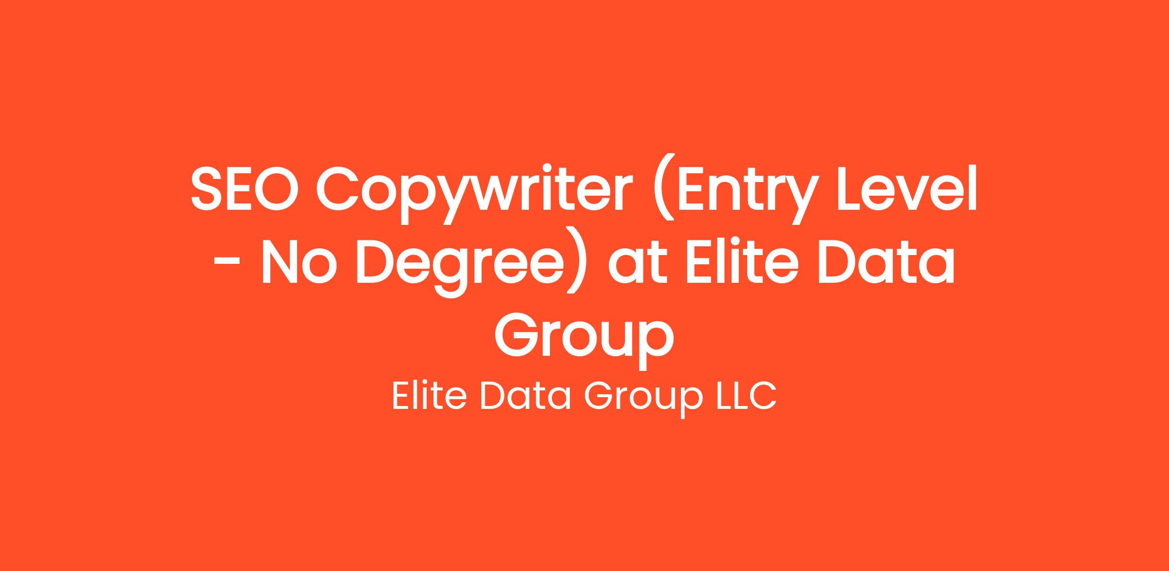 Are you highly organized and looking for the perfect entry-level opportunity? Elite Data Group LLC is currently seeking a SEO Copywriter (Entry Level - No Degree) to join our rapidly growing remote team. If you've been searching for remote jobs no degree or virtual assistant jobs, this is the exact role you've been looking for. No degree required and no prior experience is necessary—we provide comprehensive training to all new hires! You will be responsible for critical daily operations, managing secure platforms, and contributing to our vibrant digital culture.