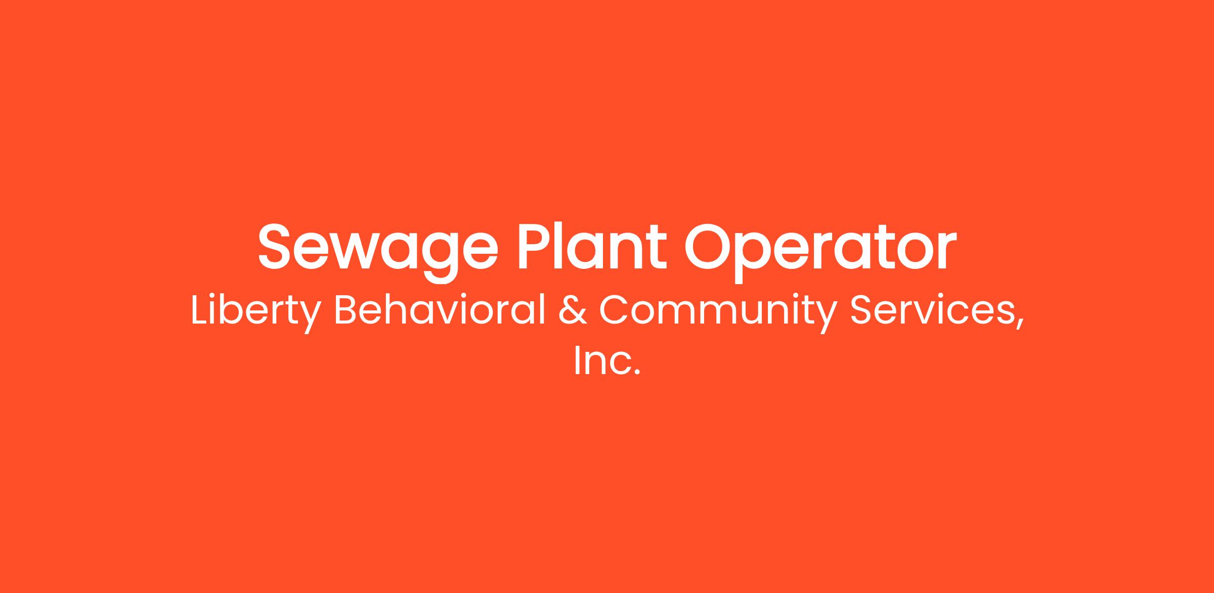 Liberty Community Programs is looking for a dedicated and skilled Sewage Plant Operator to join our team. In this critical role, you will be responsible for overseeing the operation and maintenance of our sewage treatment plant, ensuring that all processes comply with local regulations and safety standards. The ideal candidate will have experience in sewage treatment operations and a strong commitment to environmental sustainability.