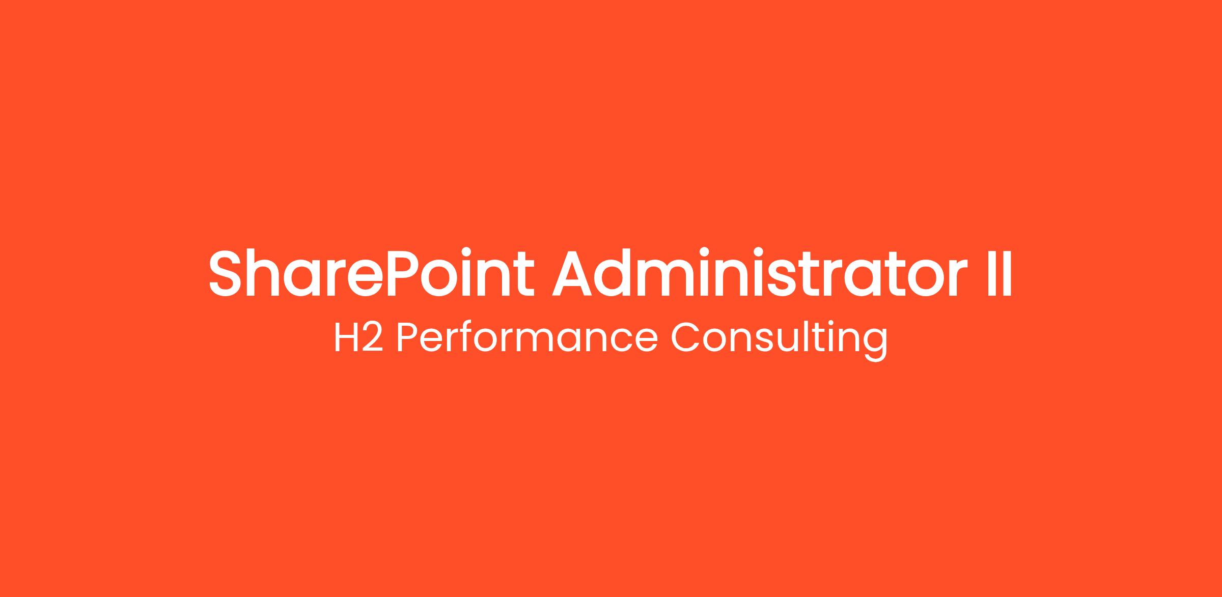 H2 Performance Consulting (H2) is seeking a SharePoint Administrator to provide support to the Administration and Resource Management Division (ARI) within Headquarters Marine Corps (HQMC). The SharePoint Administrator will provide systems administration, maintenance, and support for current and future versions of SharePoint 2013 or higher, and MS Office SharePoint Server.