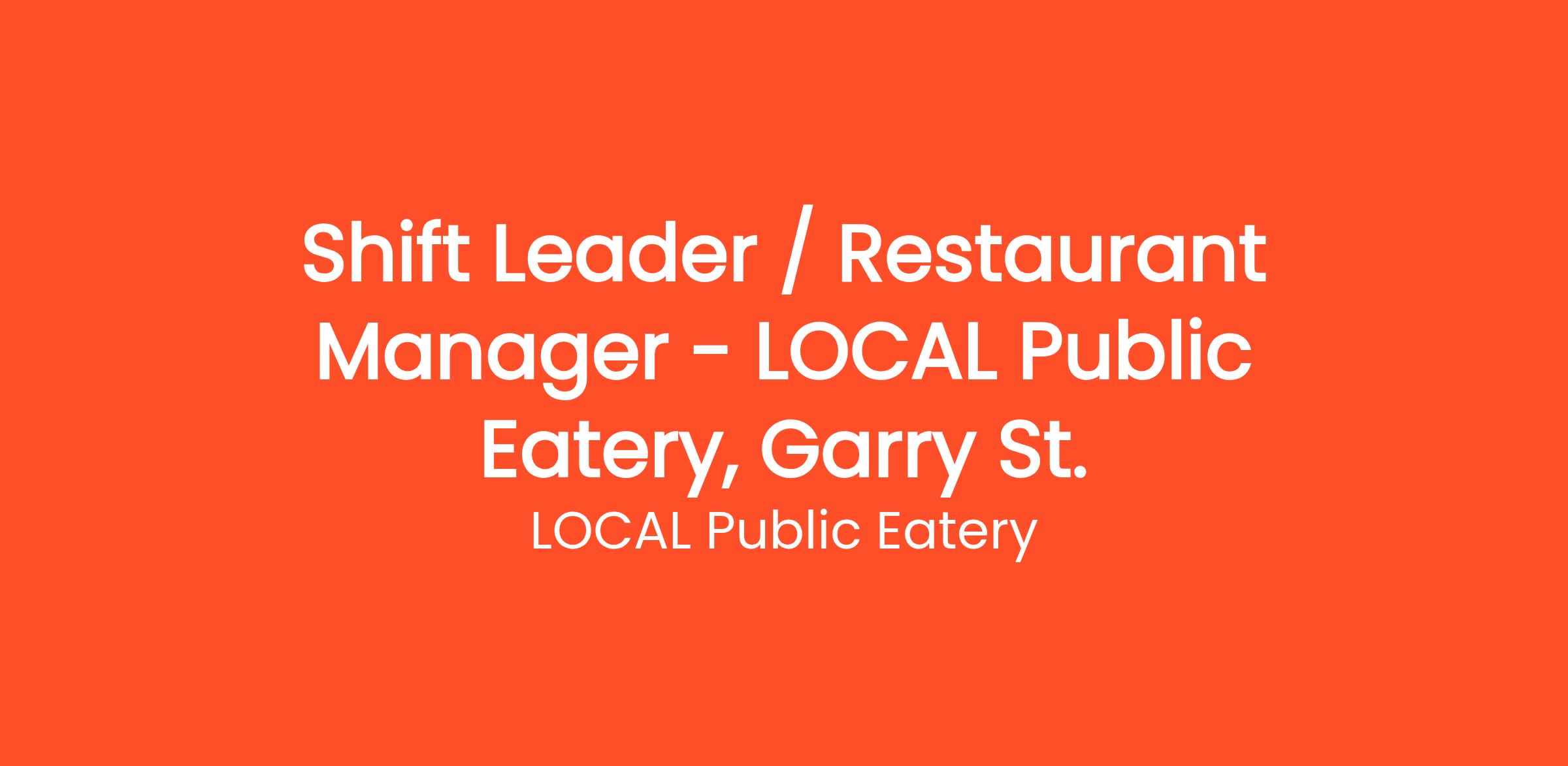 Shift Leader / Restaurant Manager - LOCAL Public Eatery, Garry St.