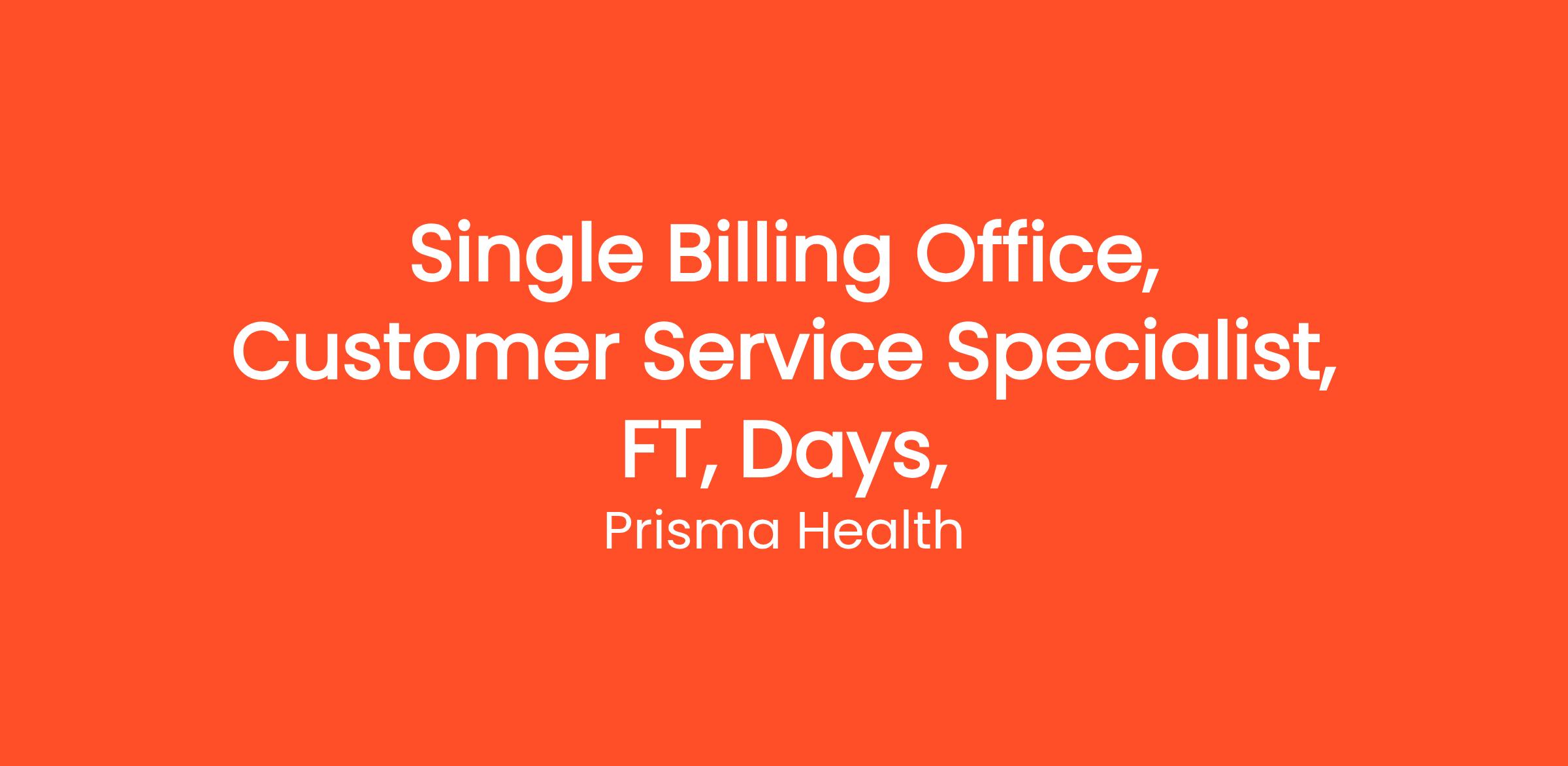70019935 System Billing OfficeShare your talent with us! Our vision is simple: to transform healthcare for the benefits of the communities we serve. The transformation of healthcare requires talented individuals in every role here at Prisma Health.