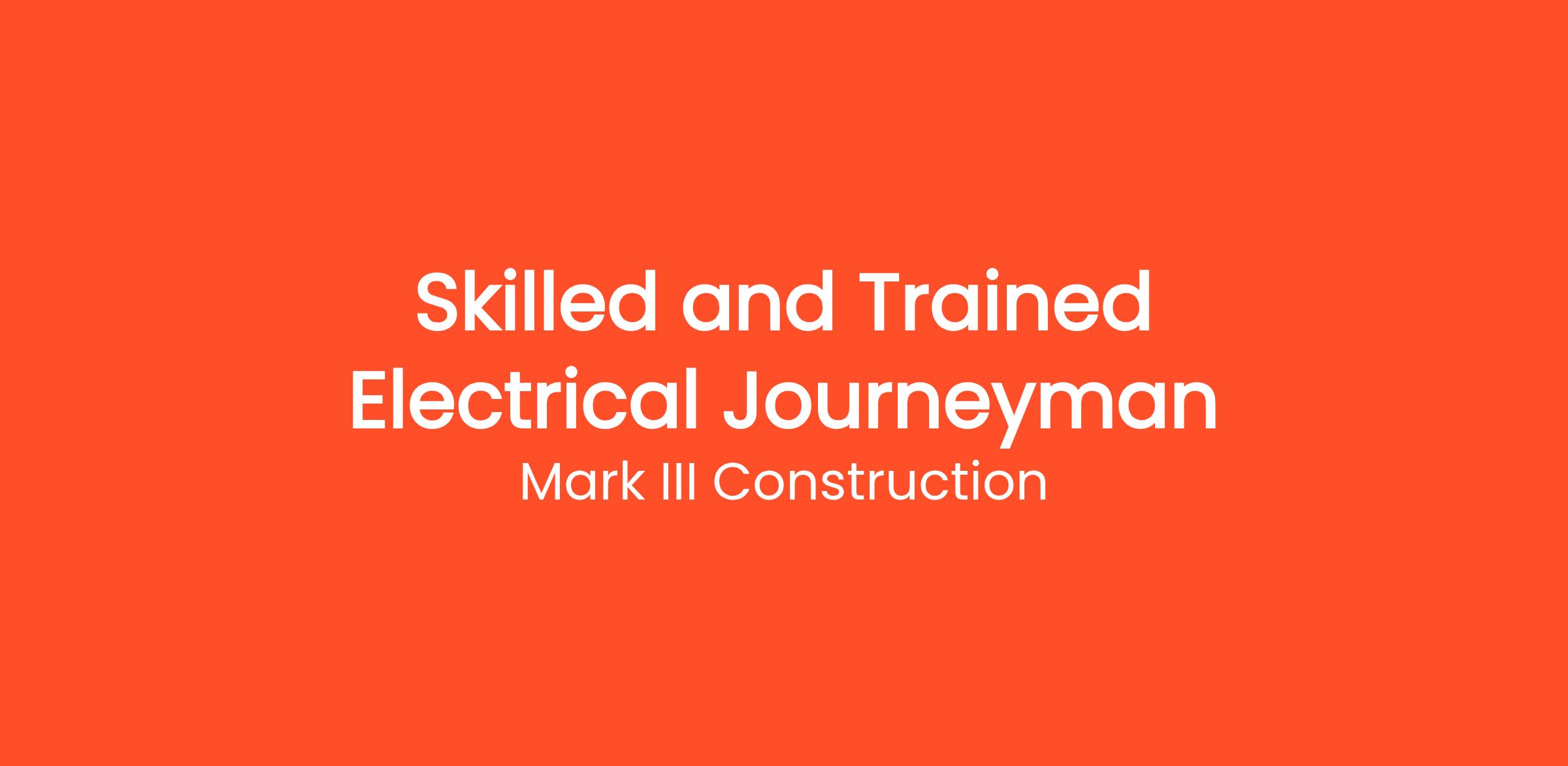 Mark III Construction, Inc. is seeking Skilled and Trained certified Electricians for immediate opportunities. Applicants must have commercial experience, be currently licensed by the State of California, and be able to work with limited supervision.