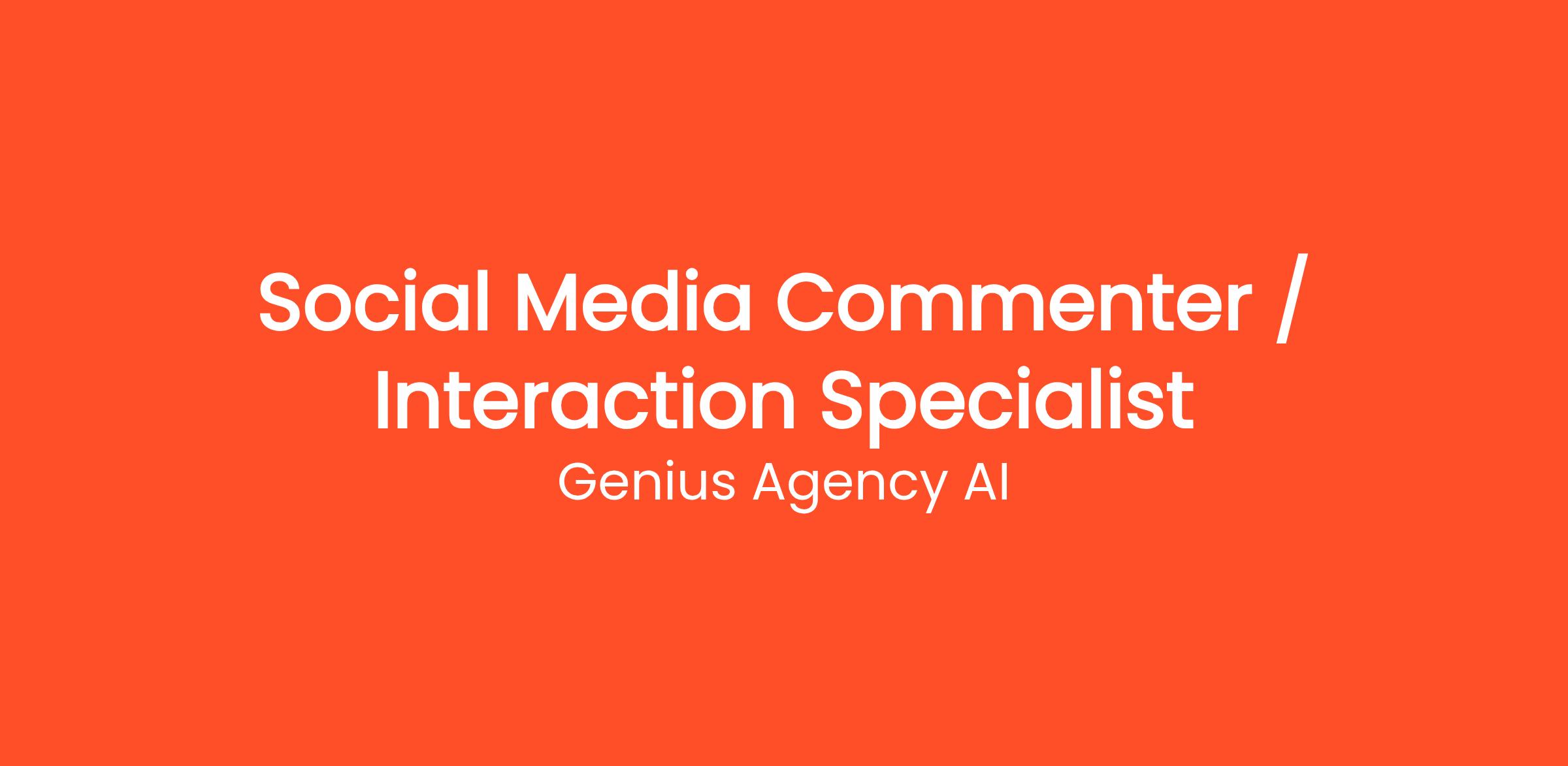 Join Genius Agency AI as a Social Media Commenter / Interaction Specialist, where you will play a pivotal role in enhancing our clients’ online engagement. This position requires a proactive and charismatic individual who thrives in a fast-paced environment and has a genuine passion for social media interactions.