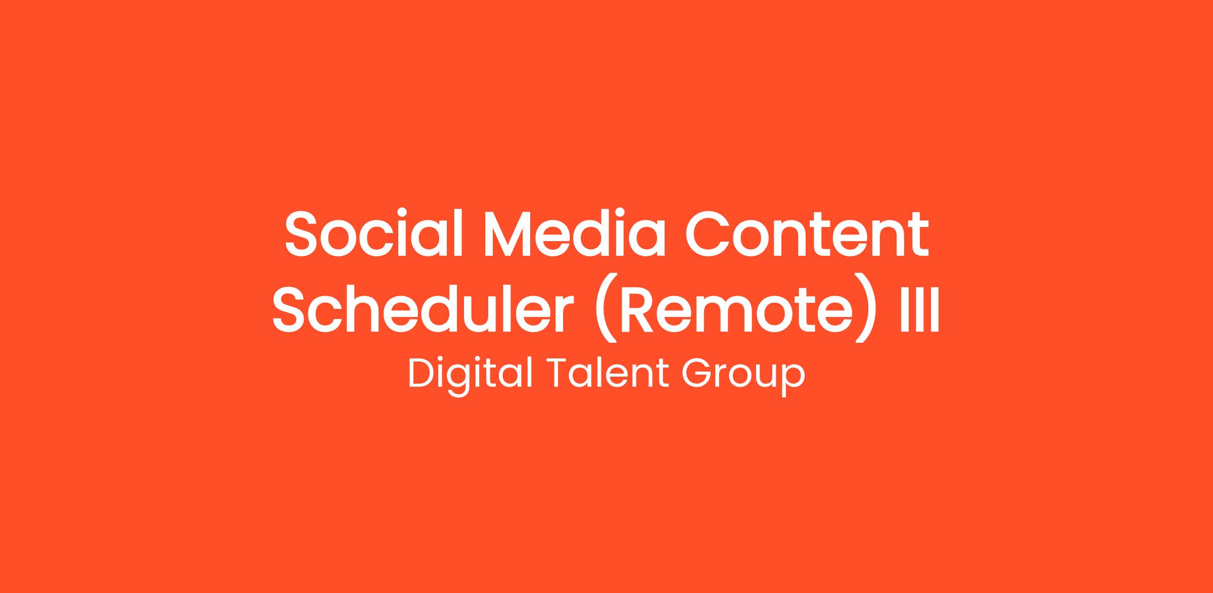 Thousands of people are already working from home as a Social Media Content Scheduler (Remote) III with Digital Talent Group. Get paid to manage social media accounts from home. Work with brands on Instagram, TikTok, Facebook, and more — no degree required. This work-from-home opportunity requires no commute, no degree, and no special prior experience. Get started on your own terms — choose your own hours and work as many or as few hours per week as you need. Payouts are processed regularly with multiple withdrawal options so you always get paid on time.