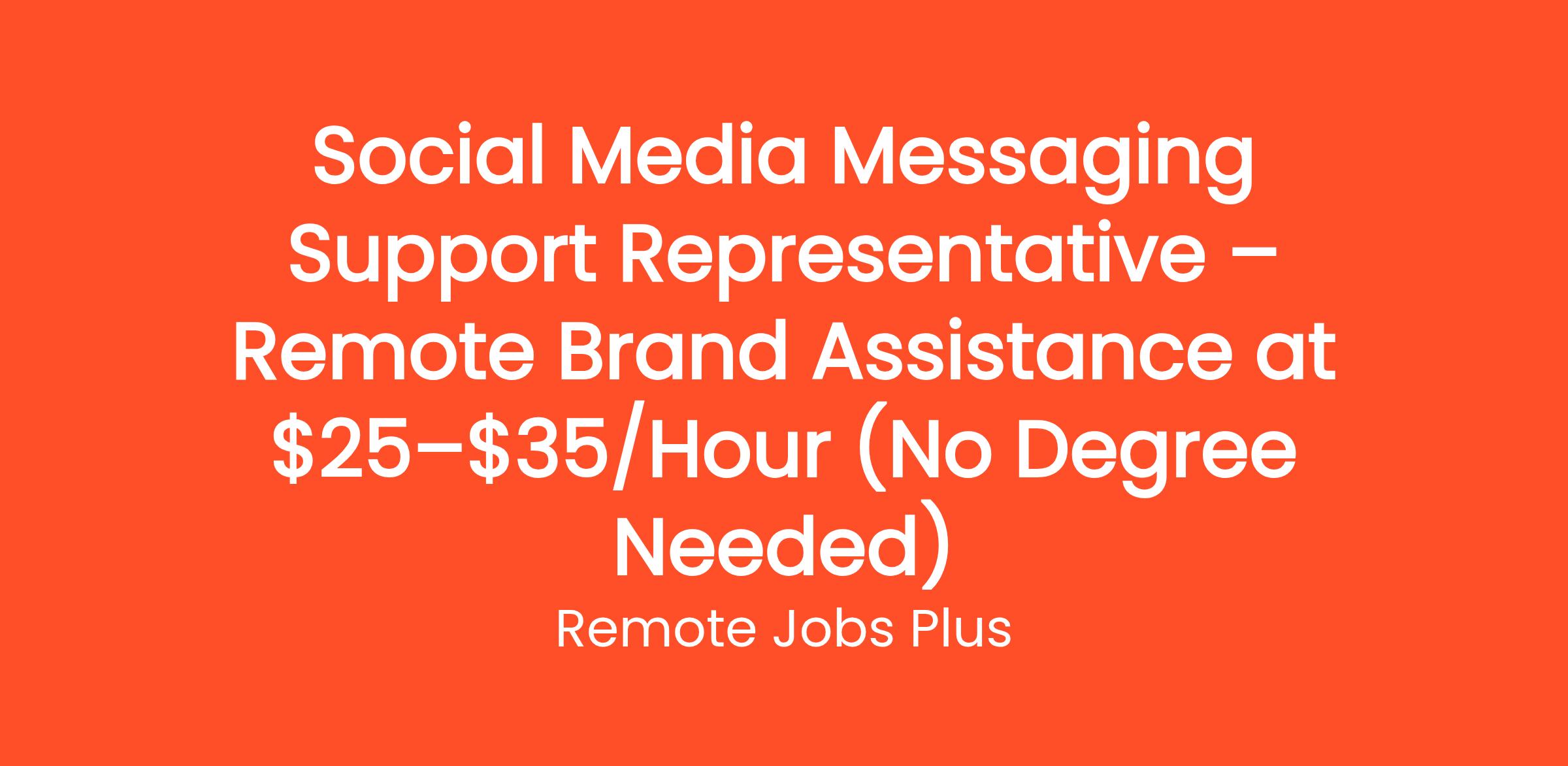 Social Media Messaging Support Representative – Remote Brand Assistance at $25–$35/Hour (No Degree Needed)