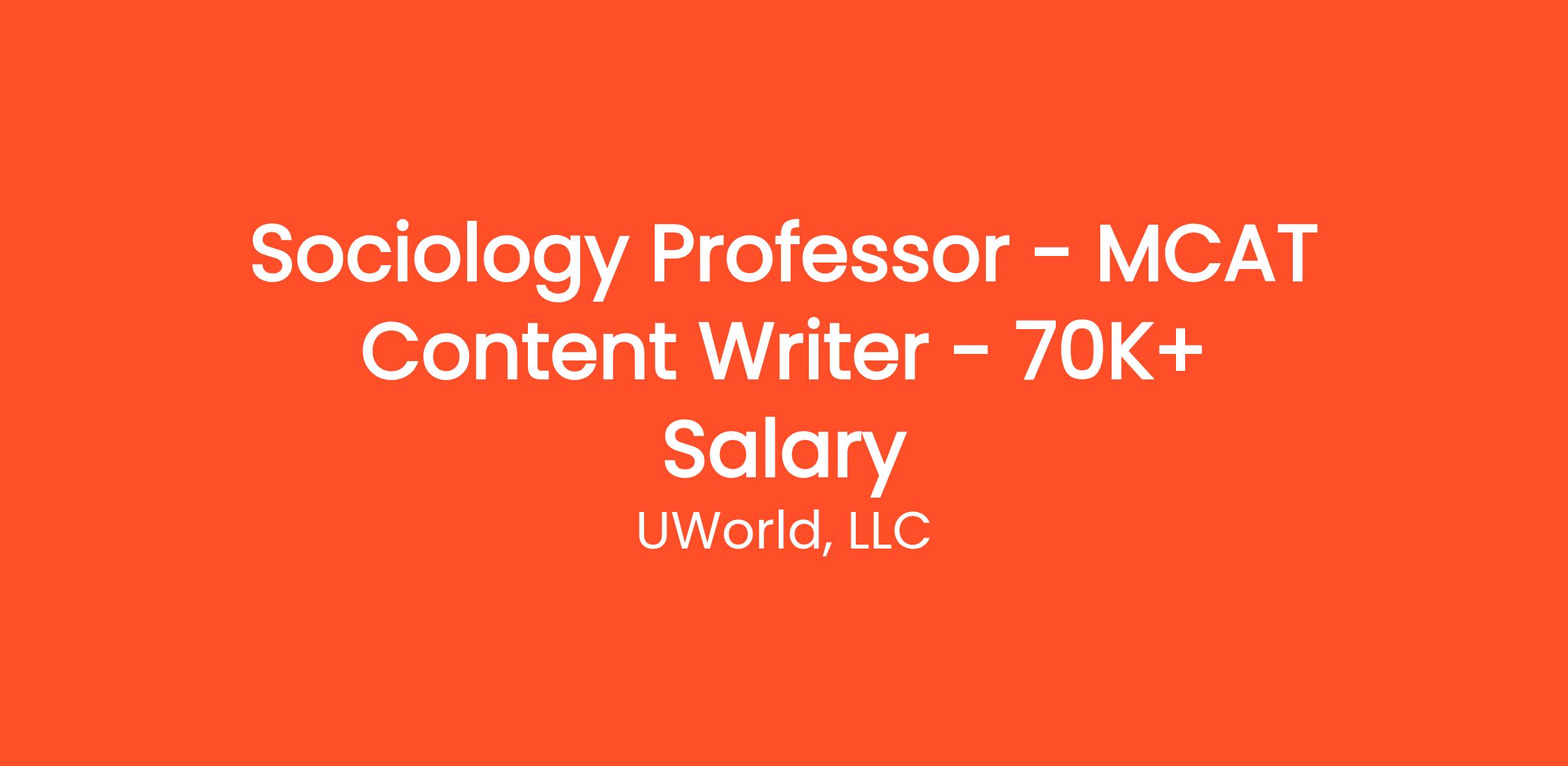 Are you passionate about sociology and education? Do you want to influence the next generation of professionals? UWorld, a global leader in test preparation, is seeking a dynamic and dedicated professor with expertise in Sociology to join our growing content team. As a content writer, you'll collaborate with top behavioral science experts to develop our renowned MCAT and AP Question Banks. This is your chance to contribute to high-impact educational tools that help students succeed!