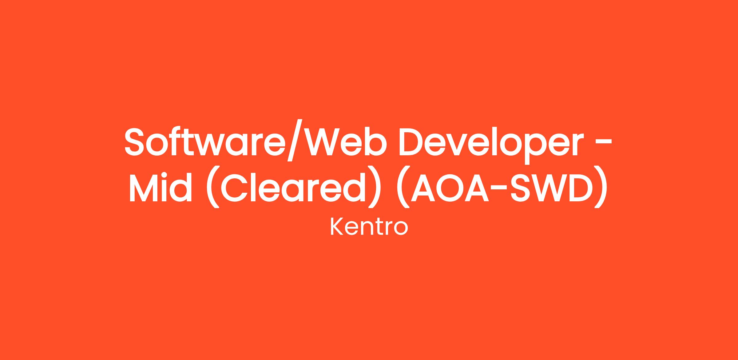 Kentro is hiring for a cleared mid-level Software/Web Developer to support the National Geospatial-Intelligence Agency.