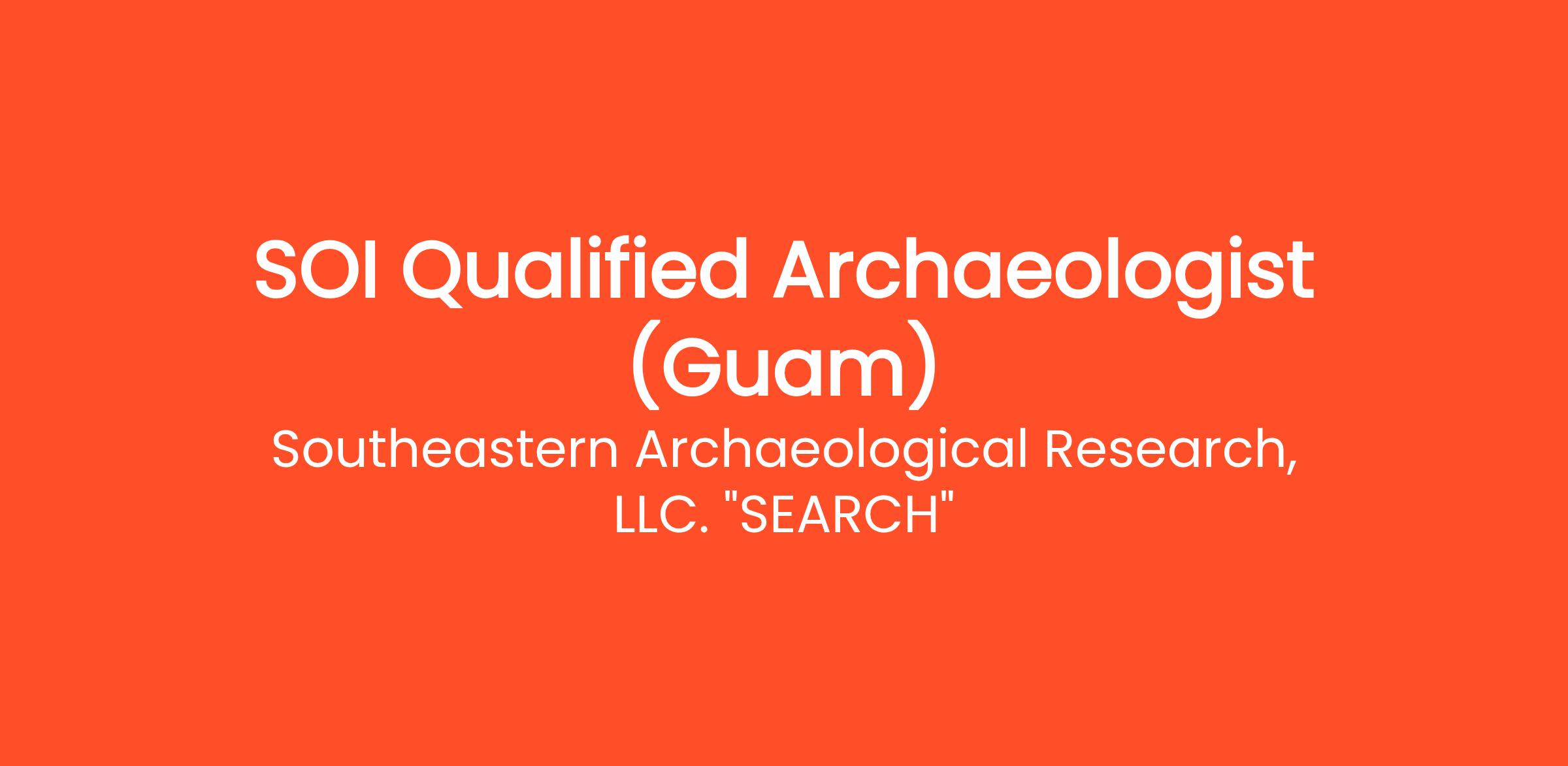 SEARCH has an immediate opening for Full-Time Archaeologists to join our Terrestrial Archaeology division for multiple opportunities in Guam. Selected candidates must be Secretary of the Interior Qualified in Archaeology and based in Guam at time of hire. In addition to local projects, archaeologists will participate in SEARCH projects outside of the island.