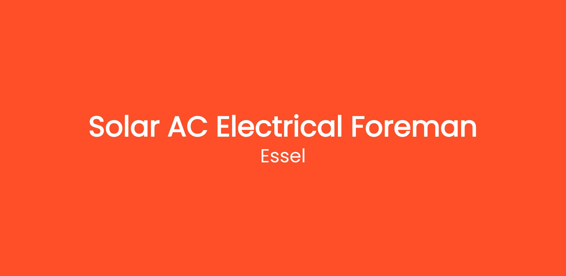 Essel is in search of an accomplished Solar AC Electrical Foreman to spearhead our solar project teams. This integral role involves supervising the installation and maintenance of solar electrical systems, ensuring projects are executed with precision, efficiency, and strict adherence to safety protocols.