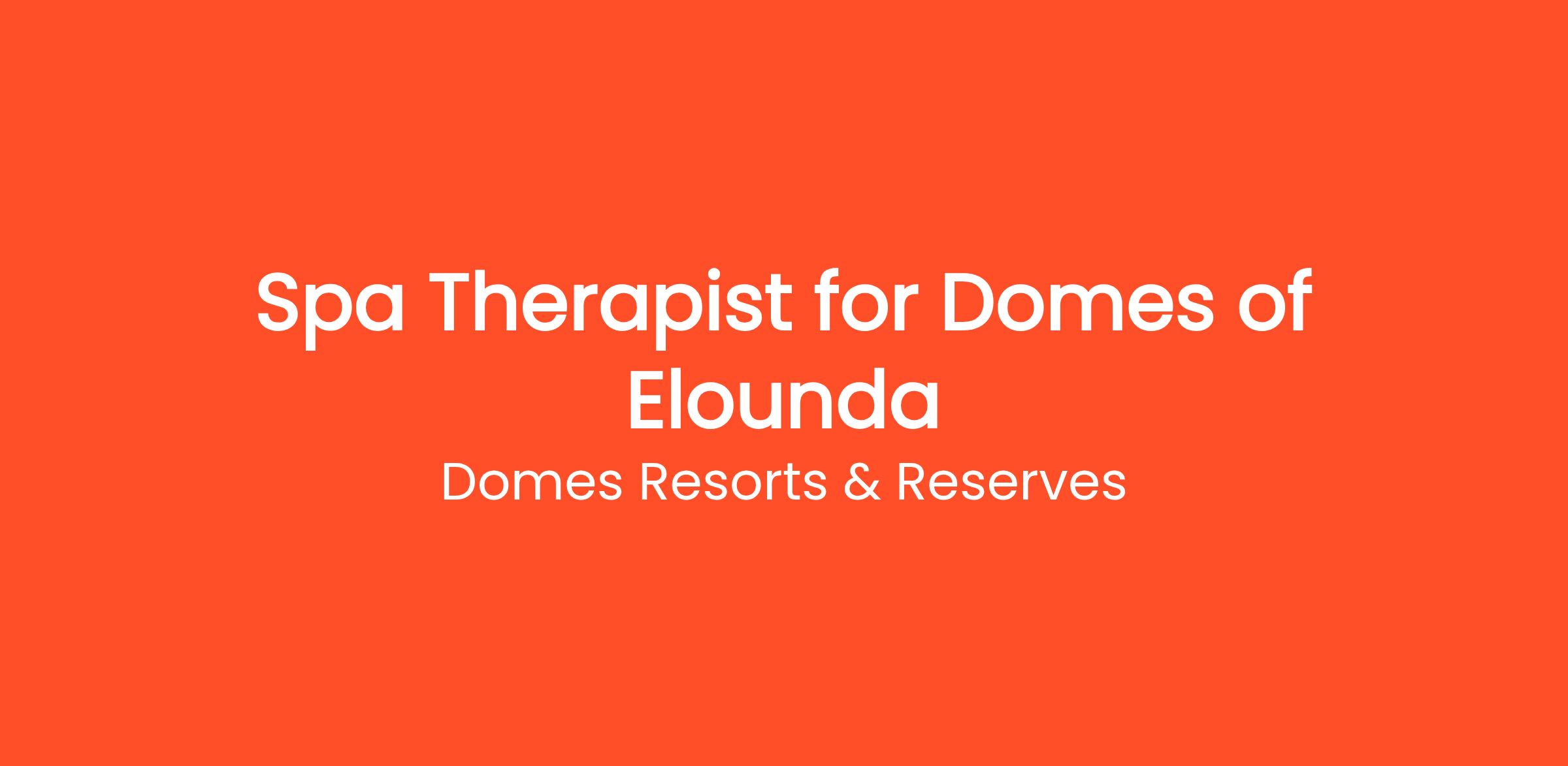 O ξενοδοχειακός όμιλος Domes Resorts, ένας από τους ταχύτερα αναπτυσσόμενους ξενοδοχειακούς ομίλους στη Μεσόγειο, προσλαμβάνει Spa Therapist για το 5* ξενοδοχείο του Domes of Elounda, an Autograph Collection Resort, στην Ελούντα της Κρήτης για την σεζόν του 2026.