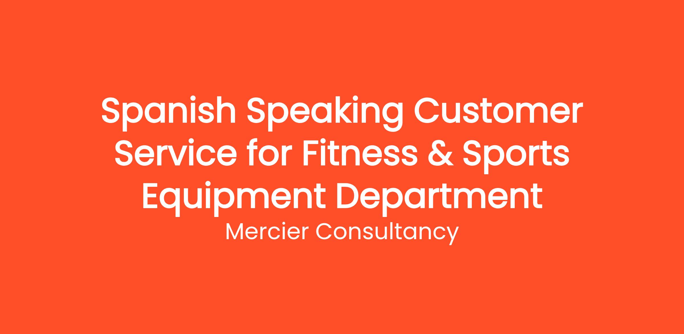 Mercier Consultancy is excited to announce an opening for a Spanish Speaking Customer Service Representative for our Client's Fitness & Sports Equipment Department. In this engaging Junior role, you will deliver outstanding support to our Spanish-speaking customers, assisting them with various inquiries related to fitness products and sports equipment.
