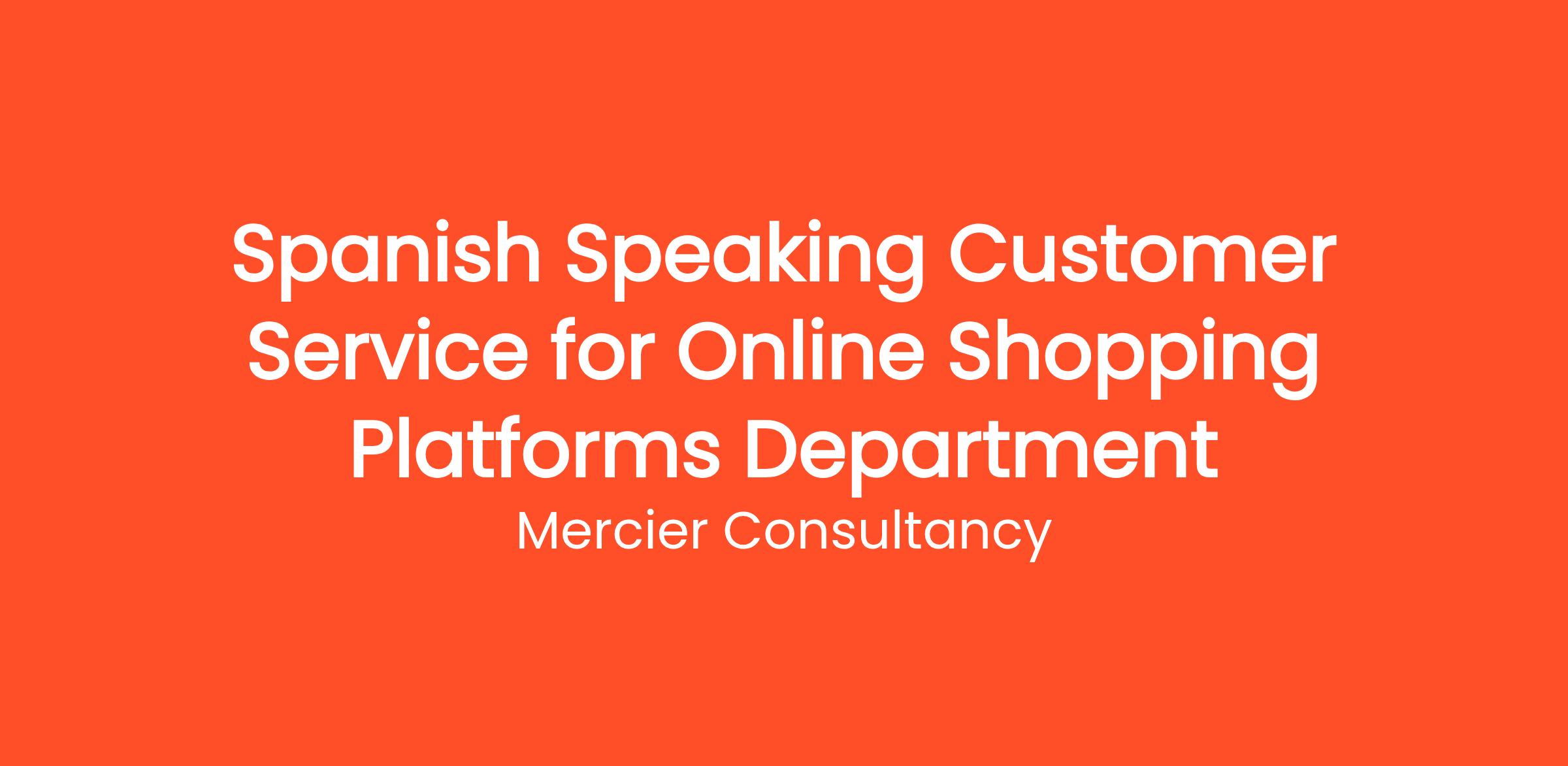 Mercier Consultancy is looking for a dynamic Spanish Speaking Customer Service Representative to join our Online Shopping Platforms Department for one of our clients. In this essential entry level role, you will provide outstanding support to our Spanish-speaking customers, assisting them with inquiries related to their online shopping experiences.