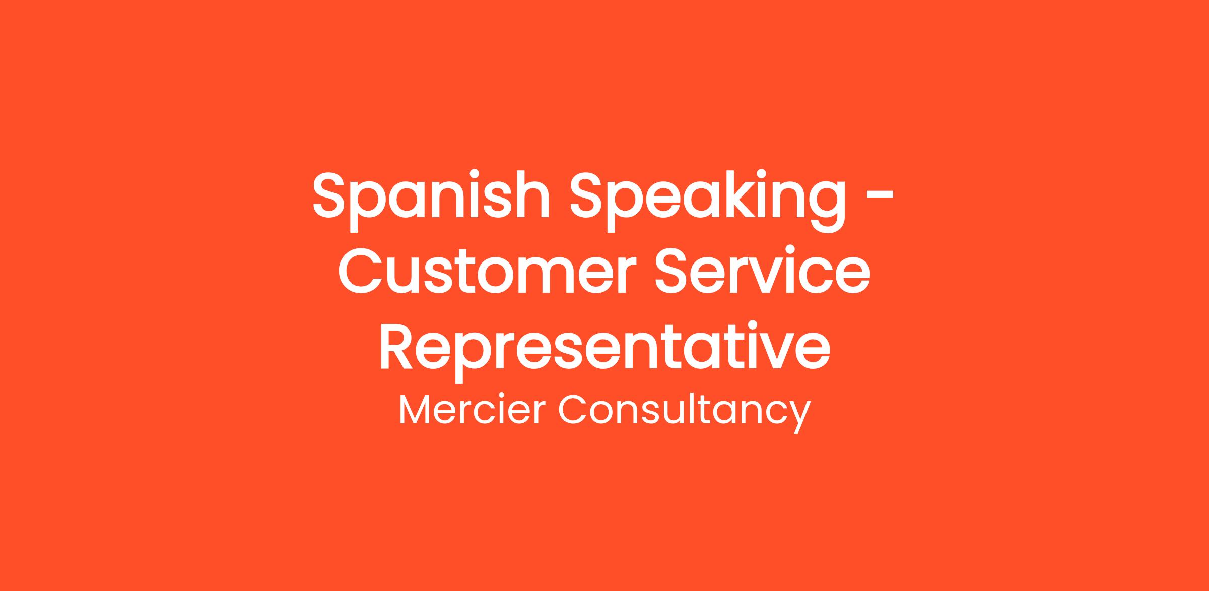 Mercier Consultancy is thrilled to announce an opening for a Spanish Speaking Customer Service Representative to join our enthusiastic team! In this pivotal role, you will serve as the primary contact for our Spanish-speaking clients, providing them with exceptional support and building strong relationships. Your ability to communicate effectively in Spanish will significantly enhance our customer experience.