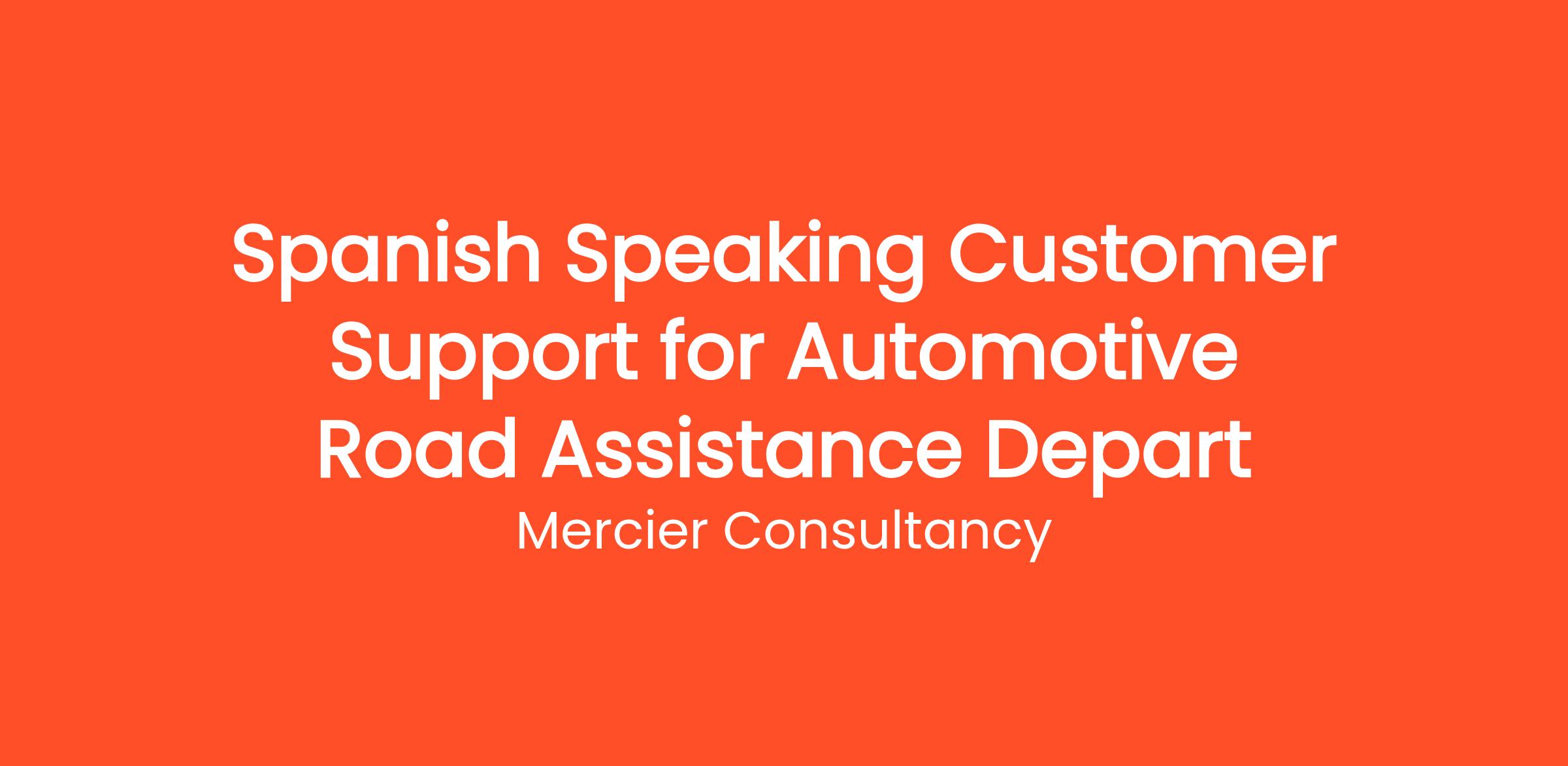 Mercier Consultancy is proud to announce an opening for a Spanish Speaking Customer Support Representative for our Client's Automotive Road Assistance Department! In this crucial Entry Level role, you will be the first point of contact for our Spanish-speaking clients, providing them with essential support and assistance for their automotive road assistance needs. Your communication skills and empathy will be key in helping customers during their time of need.