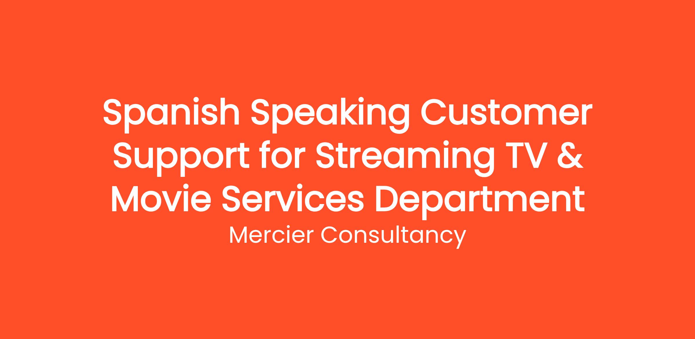 Mercier Consultancy is excited to offer a fantastic opportunity for a Spanish Speaking Customer Support Representative for our Client's Streaming TV & Movie Services Department! In this Junior role, you will be the key point of contact for our Spanish-speaking customers, providing comprehensive support and assistance related to their streaming services. Your communication skills will be essential in ensuring a seamless and enjoyable viewing experience for our clients.