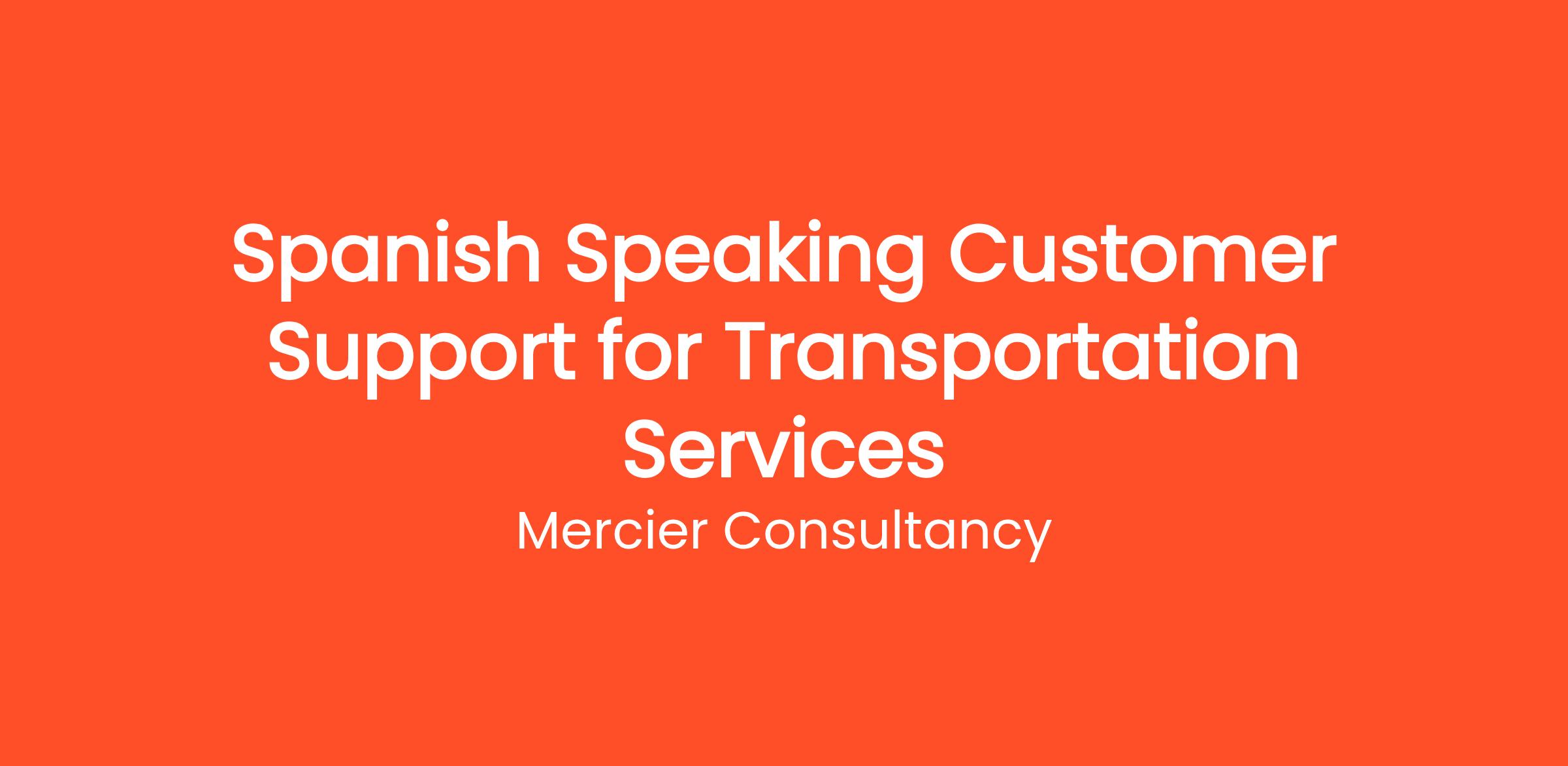 Mercier Consultancy is seeking a Spanish Speaking Customer Support Representative to join our team, specializing in transportation services! In this vital role, you will be the primary contact for our Spanish-speaking clients, providing exceptional support related to their transportation needs. Your fluency in Spanish will enable you to effectively communicate with clients, addressing their inquiries and ensuring they have a smooth experience with our services.