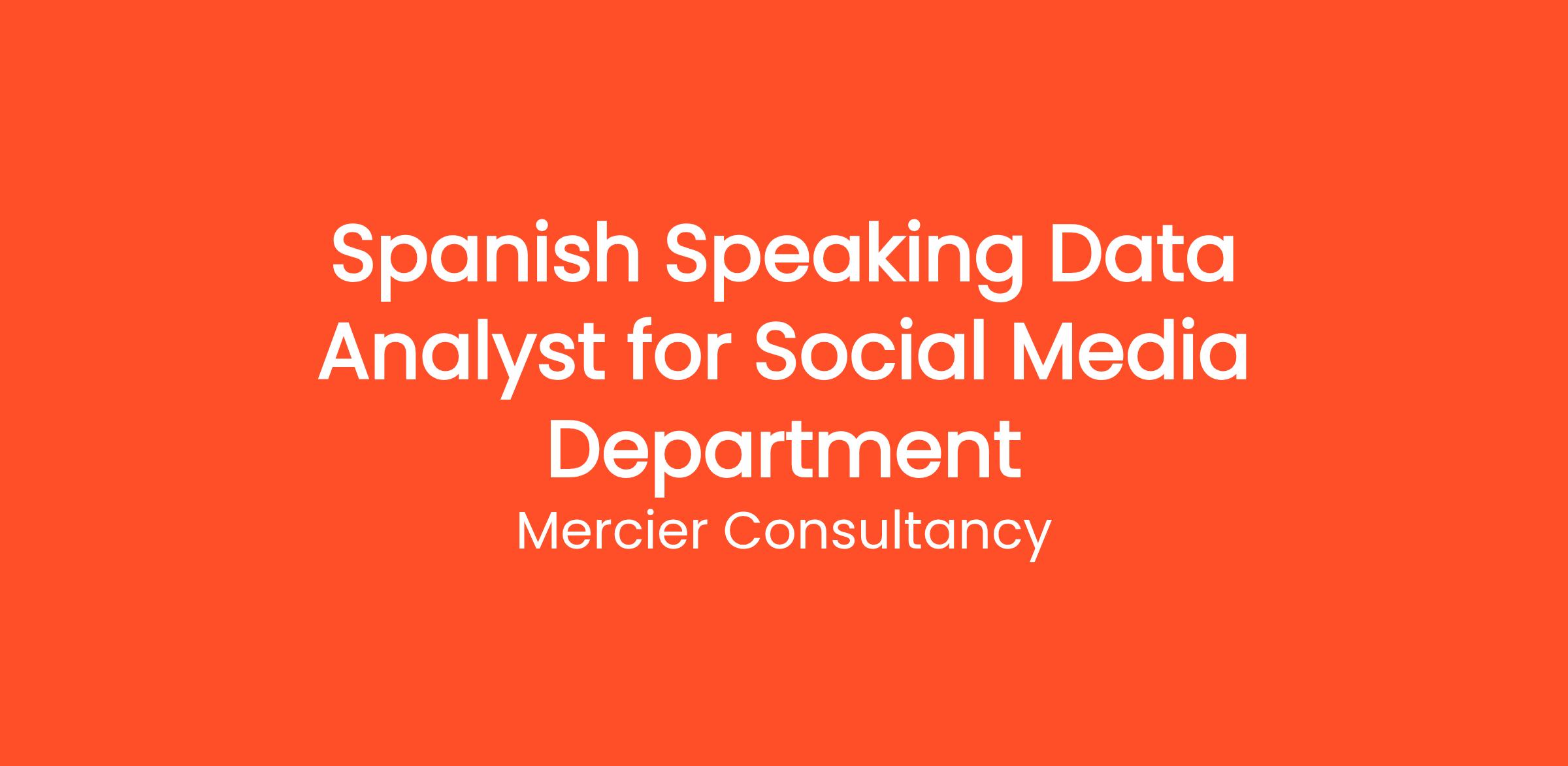 Mercier Consultancy is on the lookout for a talented Spanish Speaking Data Analyst to join our energetic Social Media Department! In this role, you will play a crucial part in analyzing social media data, providing insights that will help shape our marketing strategies and improve client engagement.