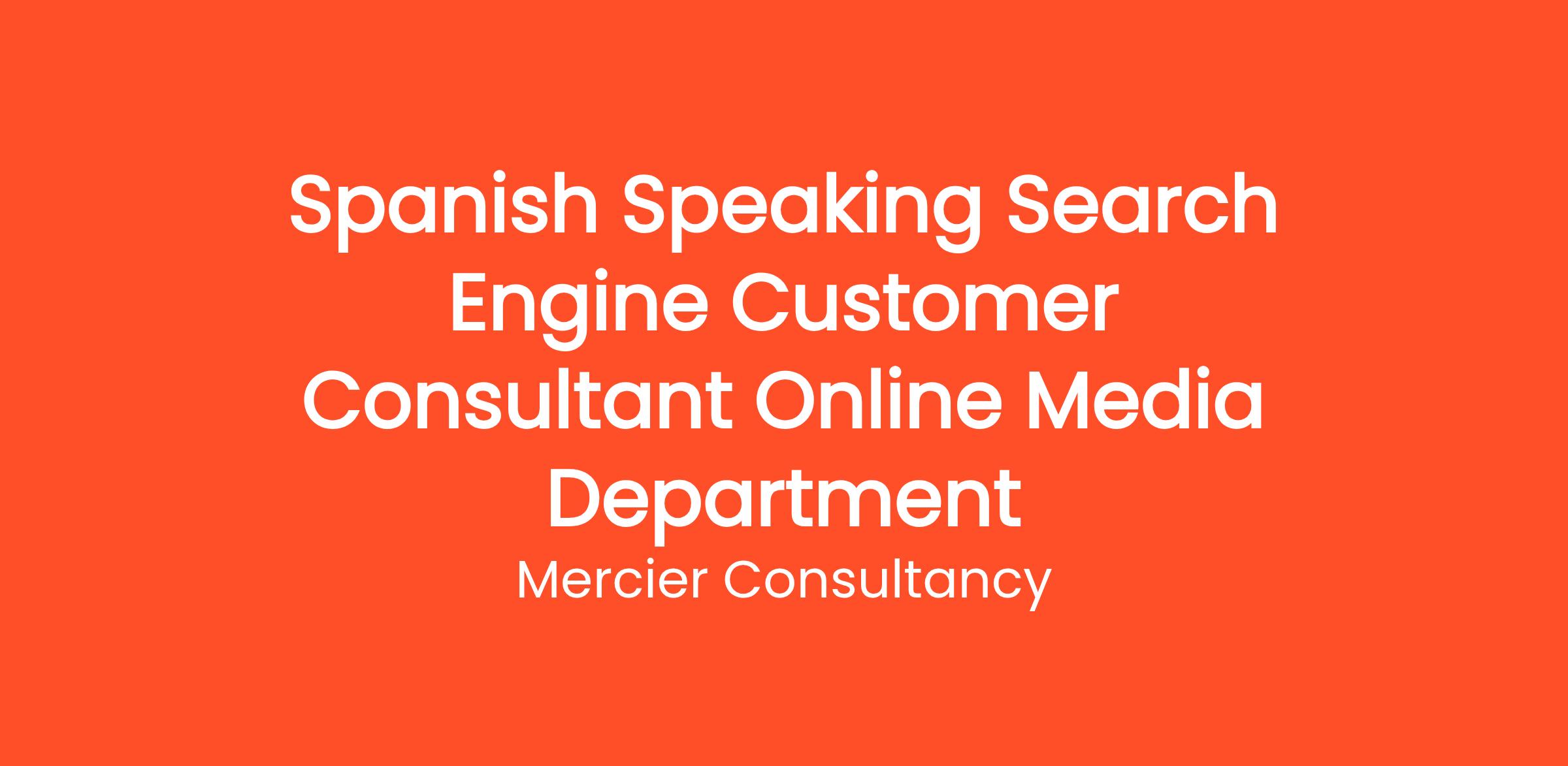 Mercier Consultancy is excited to welcome a new Spanish Speaking Search Engine Customer Consultant to our Online Media Department. In this role, you will be instrumental in helping our Spanish-speaking clients navigate our search engine services and maximize their advertising efforts online. Your expertise in customer service and fluency in Spanish will enable you to provide tailored support and build lasting relationships with clients.