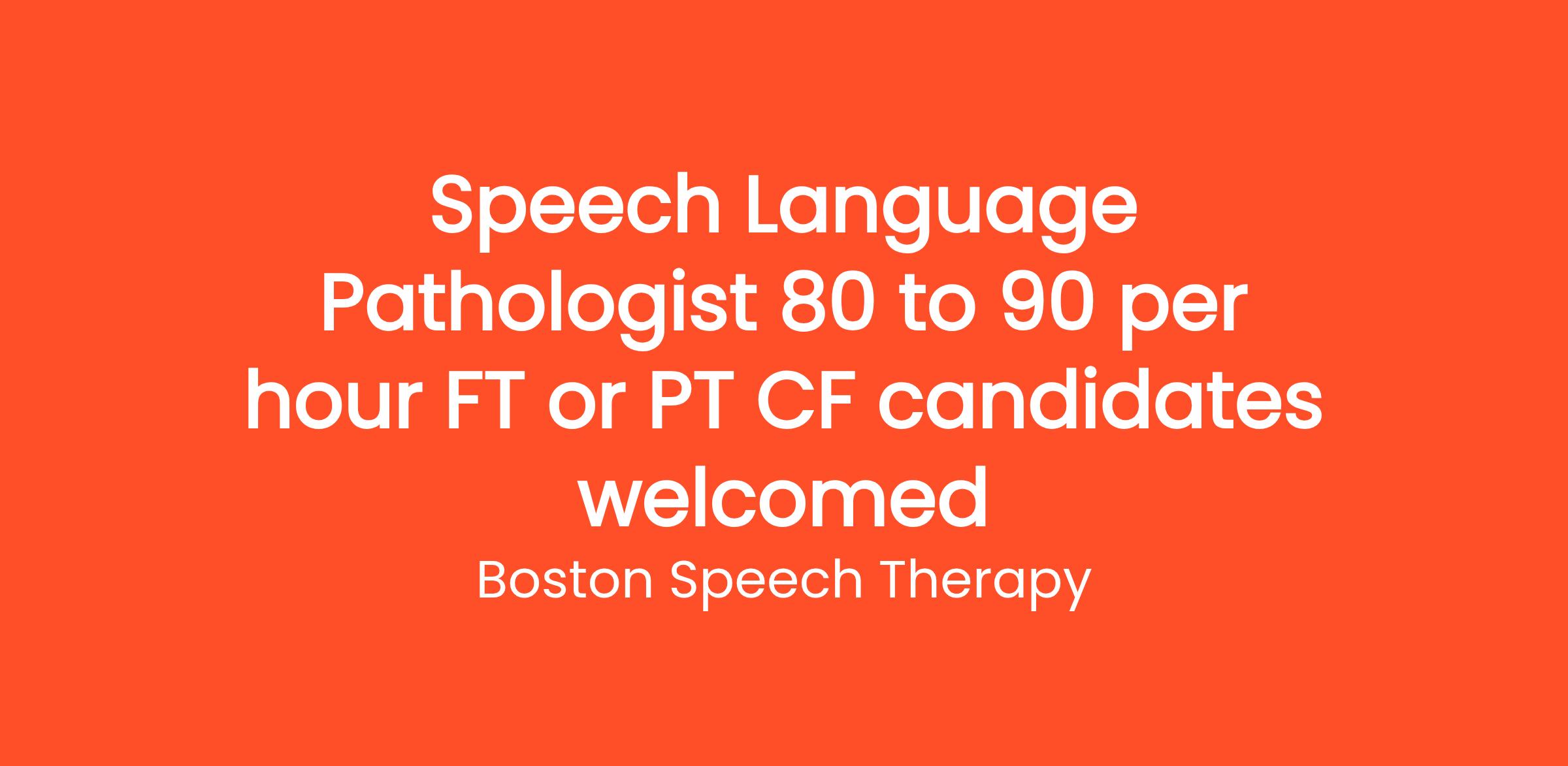 Boston Speech Therapy is excited to announce an opening for a Speech Language Pathologist to join our dedicated team in a Full-Time or Part-Time capacity. We offer competitive compensation ranging from $80 to $90 per hour based on experience.