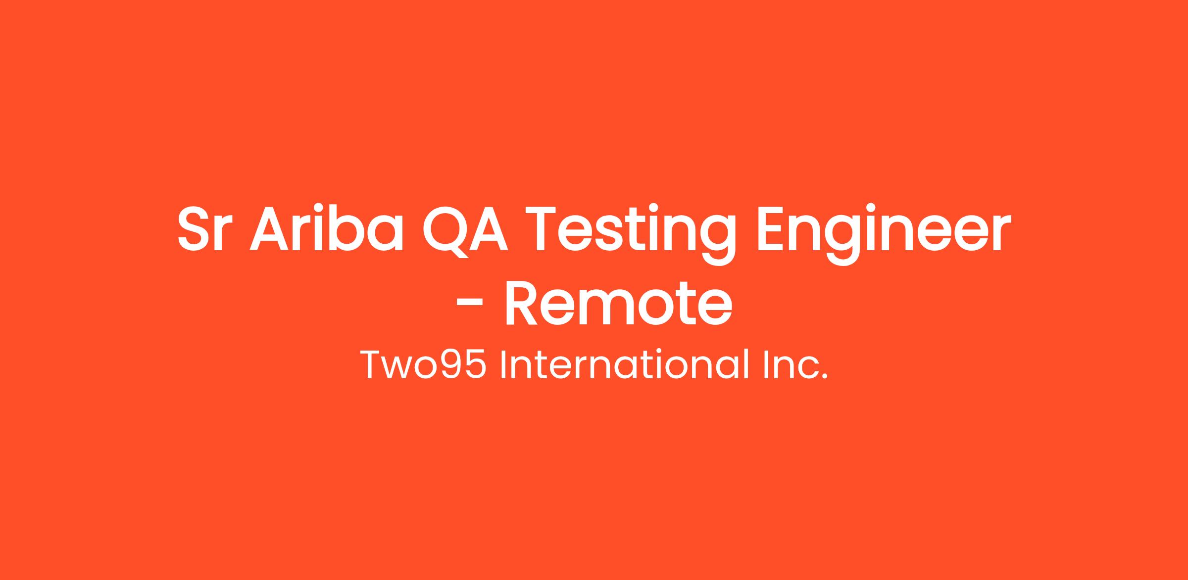 Title: Sr Ariba QA / Testing Engineer