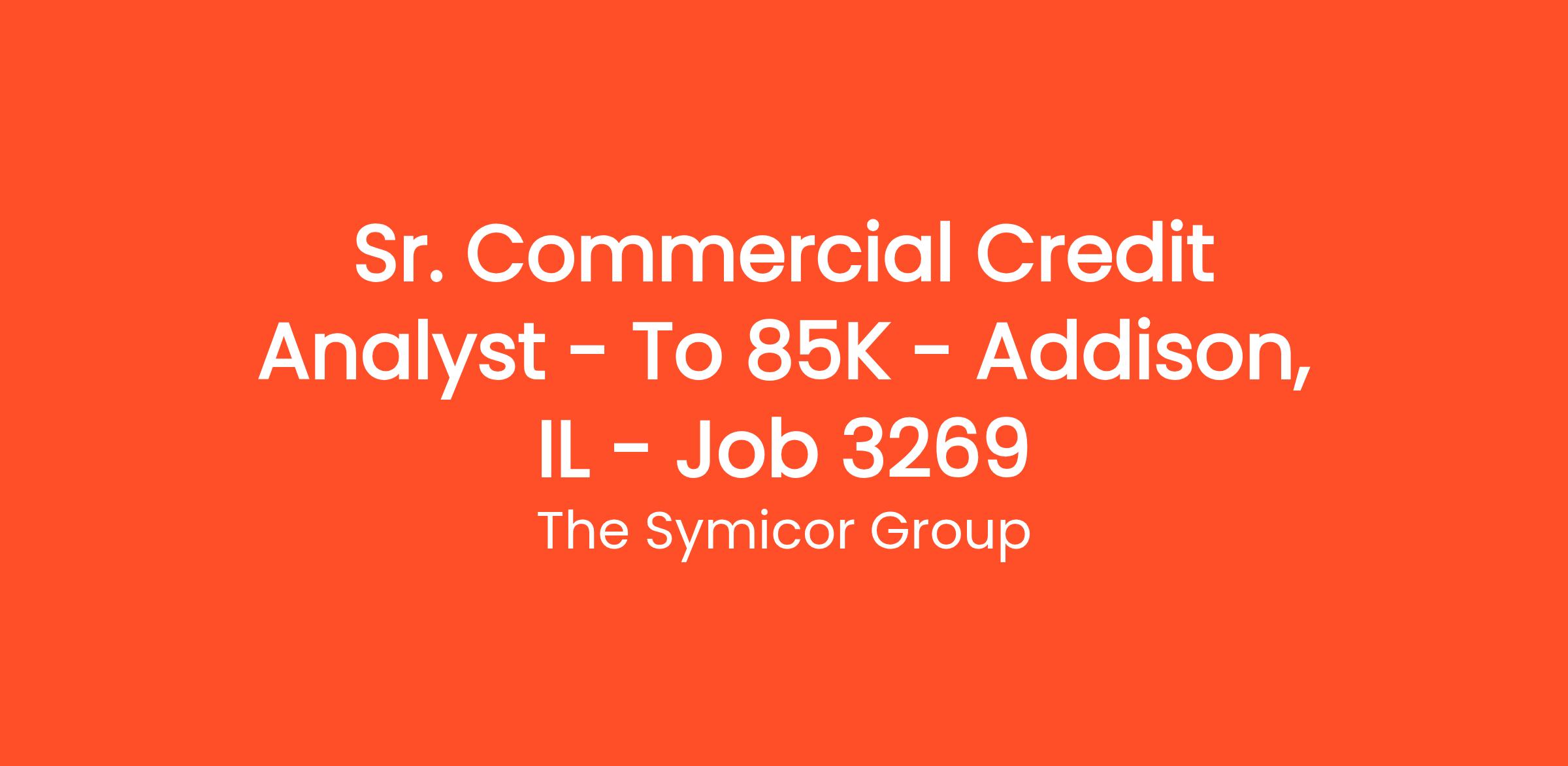 Sr. Commercial Credit Analyst – To $85K – Addison, IL – Job # 3269