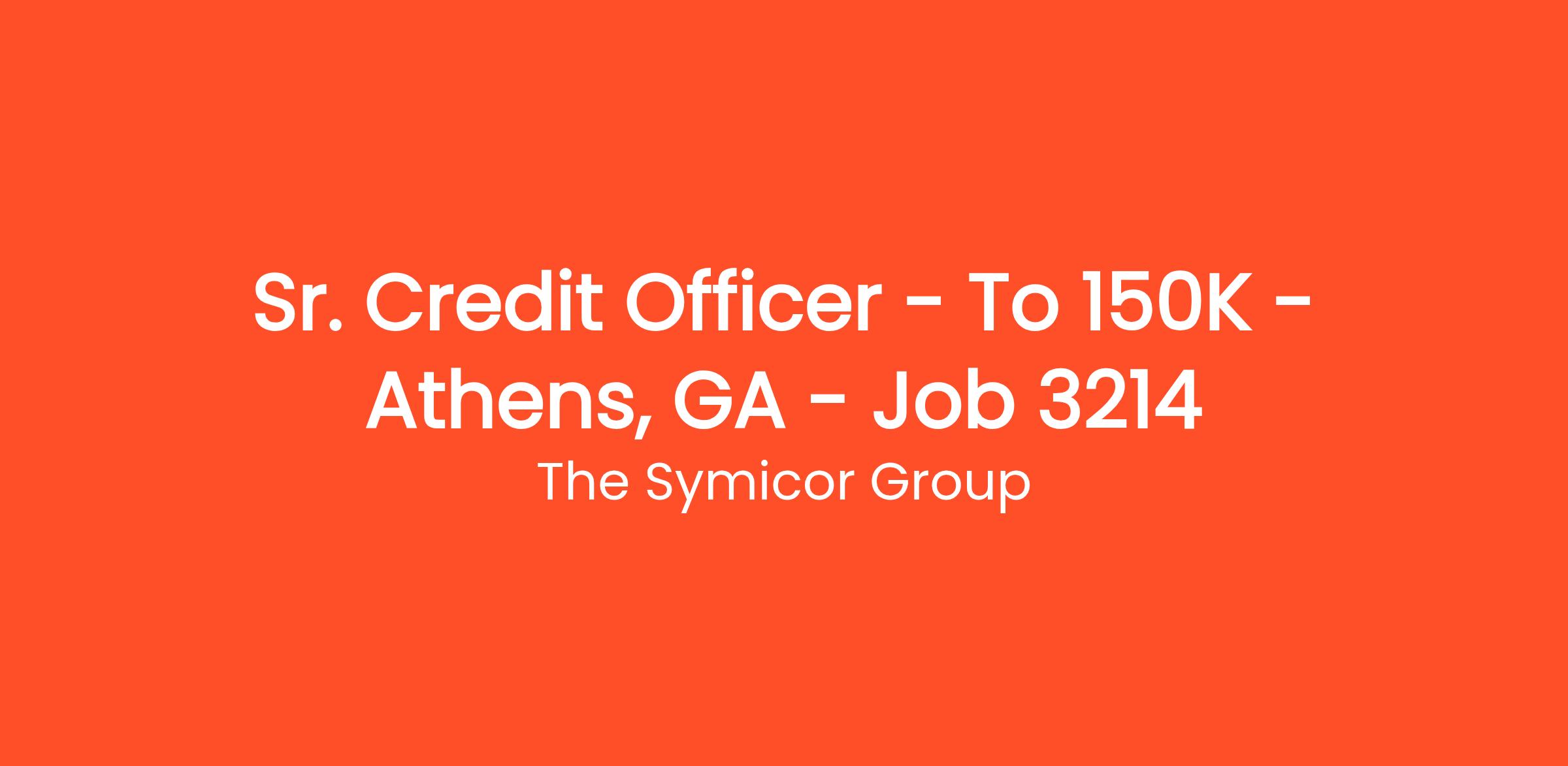 Sr. Credit Officer – To $150K – Athens, GA – Job # 3214