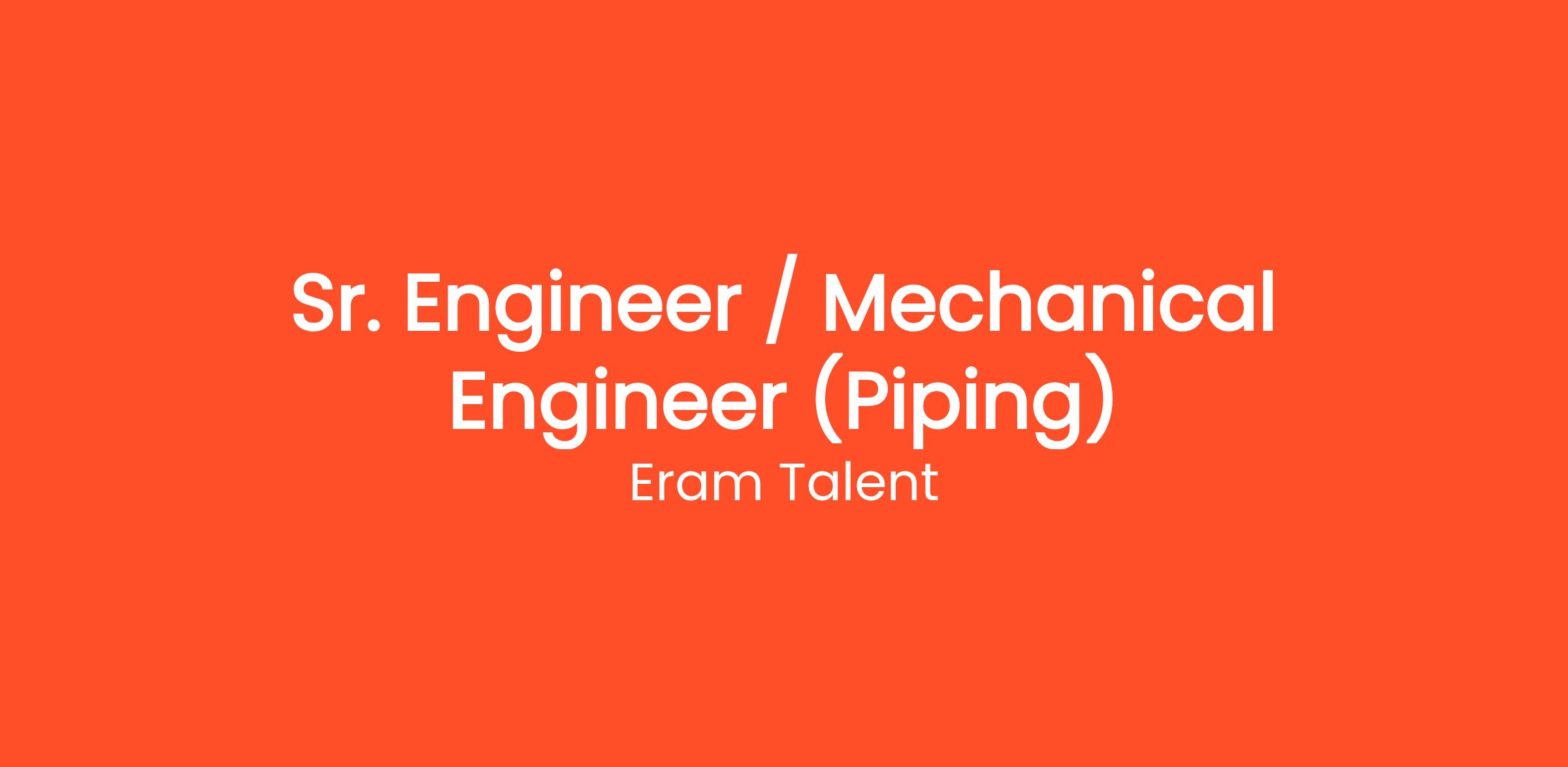 Eram Talent is looking for a highly experienced Sr. Engineer / Mechanical Engineer (Piping) to join their team in the Oil & Energy sector. In this role, you will leverage your expertise in piping systems design and engineering to support and deliver high-quality project outcomes.