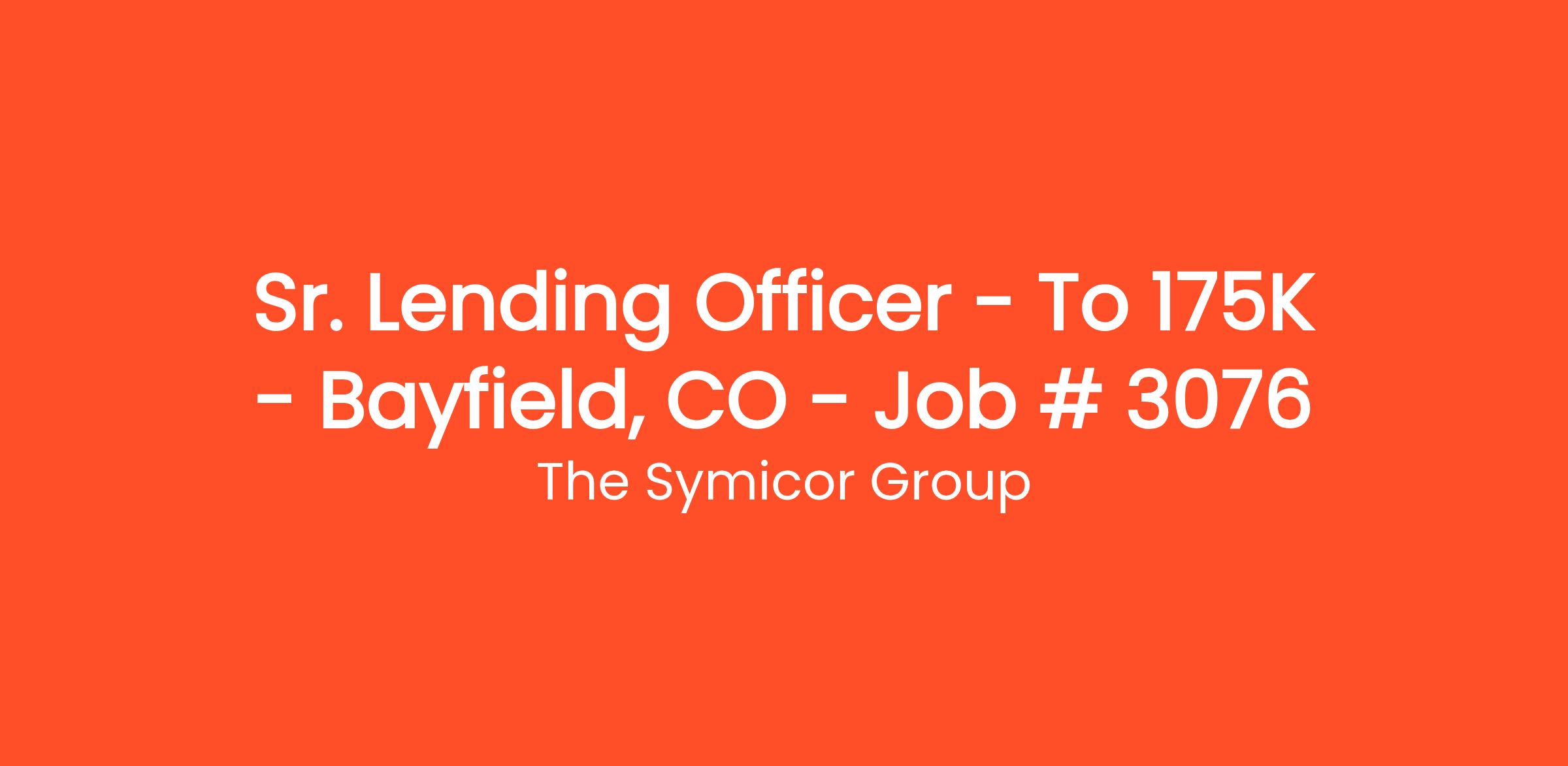 Our bank client is seeking to fill a Sr. Lending Officer role in the Bayfield, CO area. The successful candidate will build relationships with key members of the community, building a network while continuing to service the needs of existing customers.