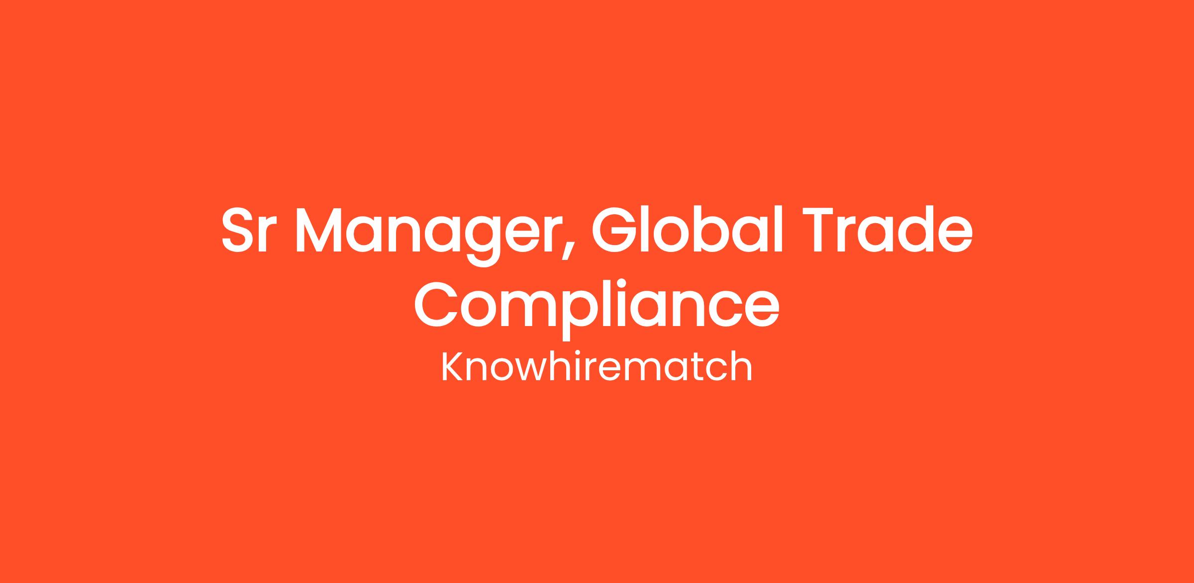 Sr Manager, Global Trade Compliance