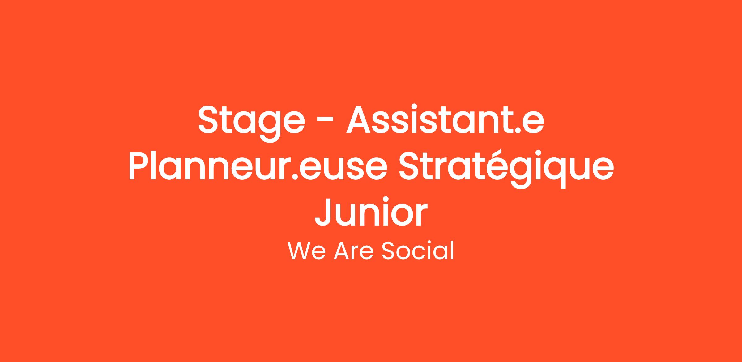 Au sein du pôle Planning Stratégique de l’agence, nous recrutons un.e Assistant.e Planneur.euse Stratégique Junior en stage.