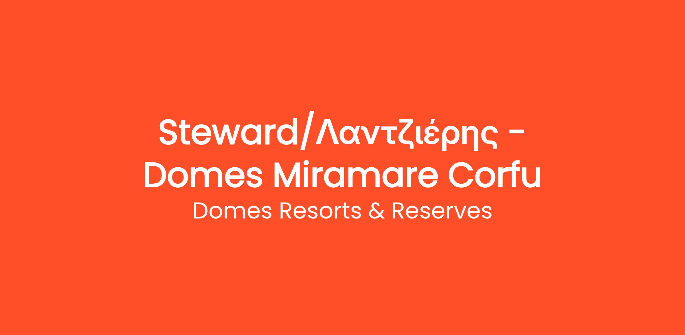 Αυτή την στιγμή προσλαμβάνουμε για το 5* ξενοδοχείο Domes Miramare Corfu που εδρεύει στην Κέρκυρα, Steward/Λαντζιέρη για να γίνει μέλος της ομάδας μας.