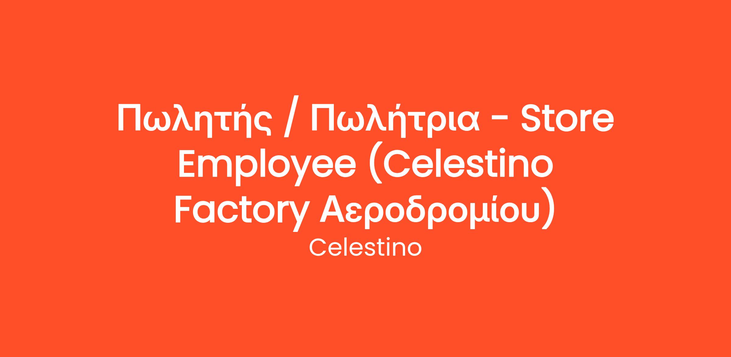 Η CELESTINO είναι μία από τις μεγαλύτερες ελληνικές εταιρίες γυναικείας ένδυσης για περισσότερο από 40 έτη. Με διαρκή ανάπτυξη και παρουσία στην Ελλάδα και στο εξωτερικό, αναζητά ενθουσιώδεις ανθρώπους με θετική διάθεση, χαμόγελο και όρεξη για εξυπηρέτηση πελατών. 🛍️