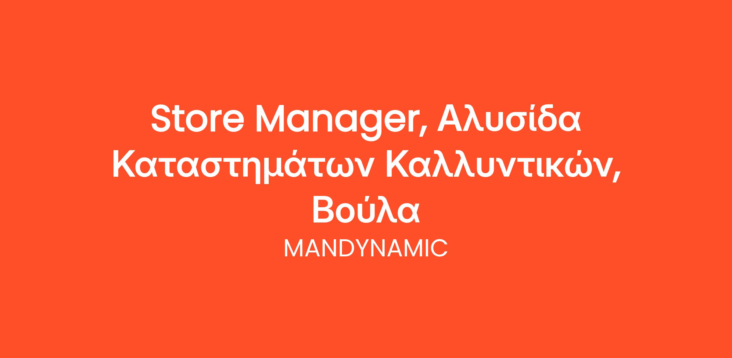 Η MANDYNAMIC αναζητά υπεύθυνο/η καταστήματος εκ μέρους αλυσίδας καταστημάτων λιανικής, στην Βούλα.