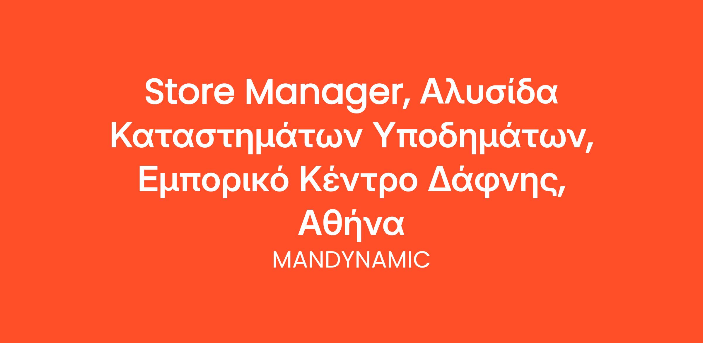 Η MANDYNAMIC αναζητά υπεύθυνο/η καταστήματος εκ μέρους αλυσίδας καταστημάτων λιανικής, στο Εμπορικό Κέντρο Δάφνης,.