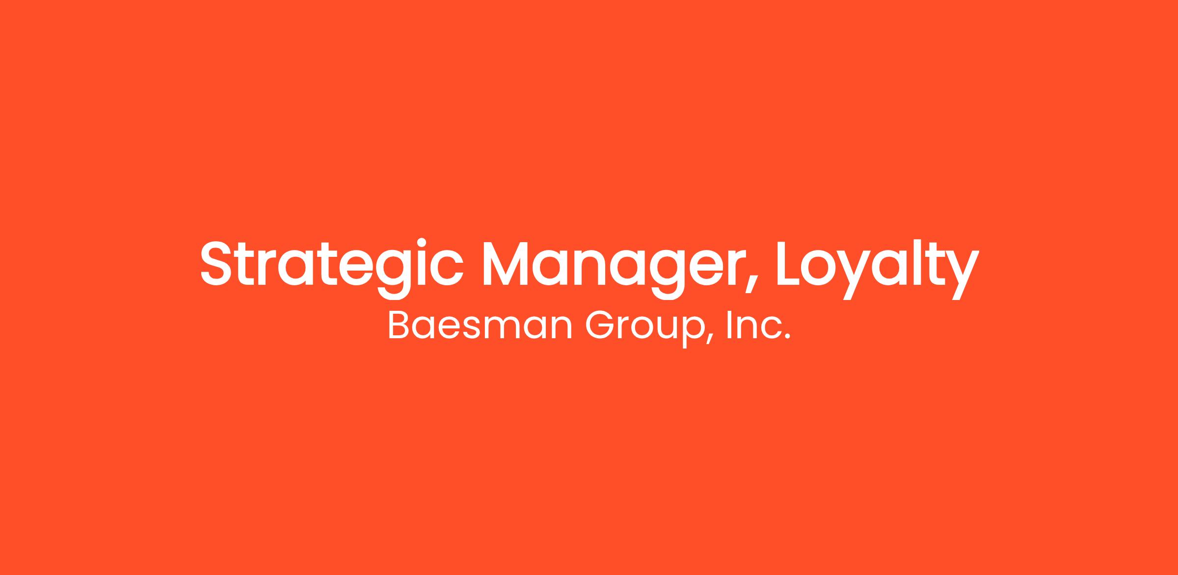 Baesman Group, a nationally recognized provider of direct-to-consumer and in-store marketing strategy and execution, is seeking an experienced Strategic Account Manager, CRM & Loyalty.