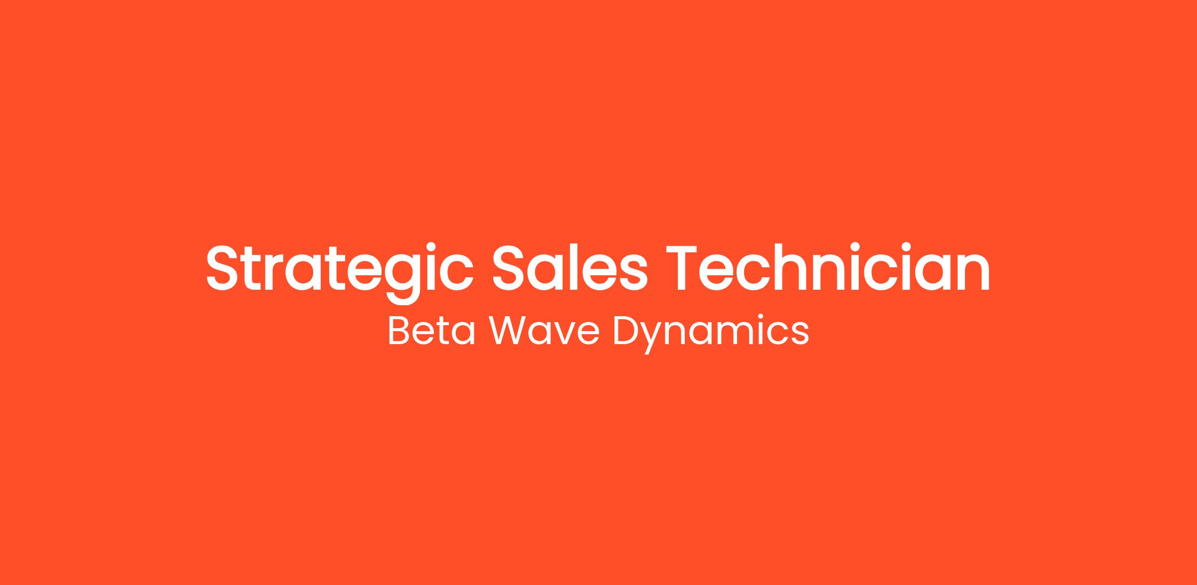 Are you ready to redefine industry standards alongside a team of elite professionals? Submit your absolute best application for the Strategic Sales Technician role today. We require a detailed resume outlining your progressive career history, accompanied by professional references upon request. We are fundamentally looking for evidence of your ability to tackle complex, ambiguous problems independently. Therefore, any project summaries or case studies you can provide will significantly bolster your application. Our hiring process is rigorous but fair, consisting of peer-level technical screens, behavioral assessments, and executive reviews. We are committed to providing a candidate experience that is as exceptional as our workplace culture. Apply immediately to begin the conversation, and we look forward to exploring the immense value you can bring to Beta Wave Dynamics.