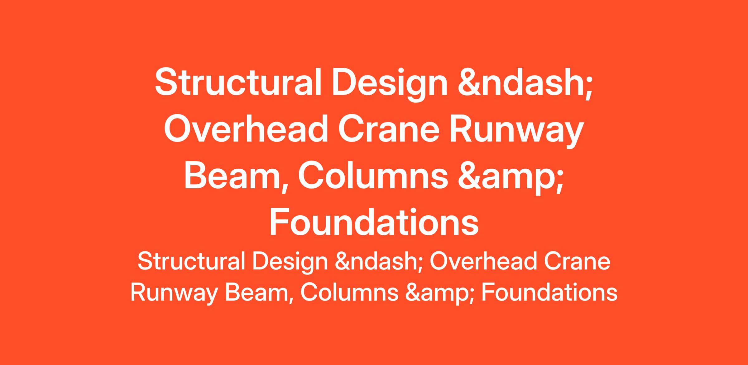 We are seeking an experienced structural engineer/designer to perform the structural design of an overhead crane runway system for a 10-ton overhead crane. The scope includes crane runway beams, supporting steel columns, and reinforced concrete foundations... (Budget: $30 - $250 USD, Jobs: AutoCAD, AutoCAD Advance Steel, Civil Engineering, Design Optimization, Engineering Drawing, Mechanical Engineering, Structural Engineering, Tekla Structures)