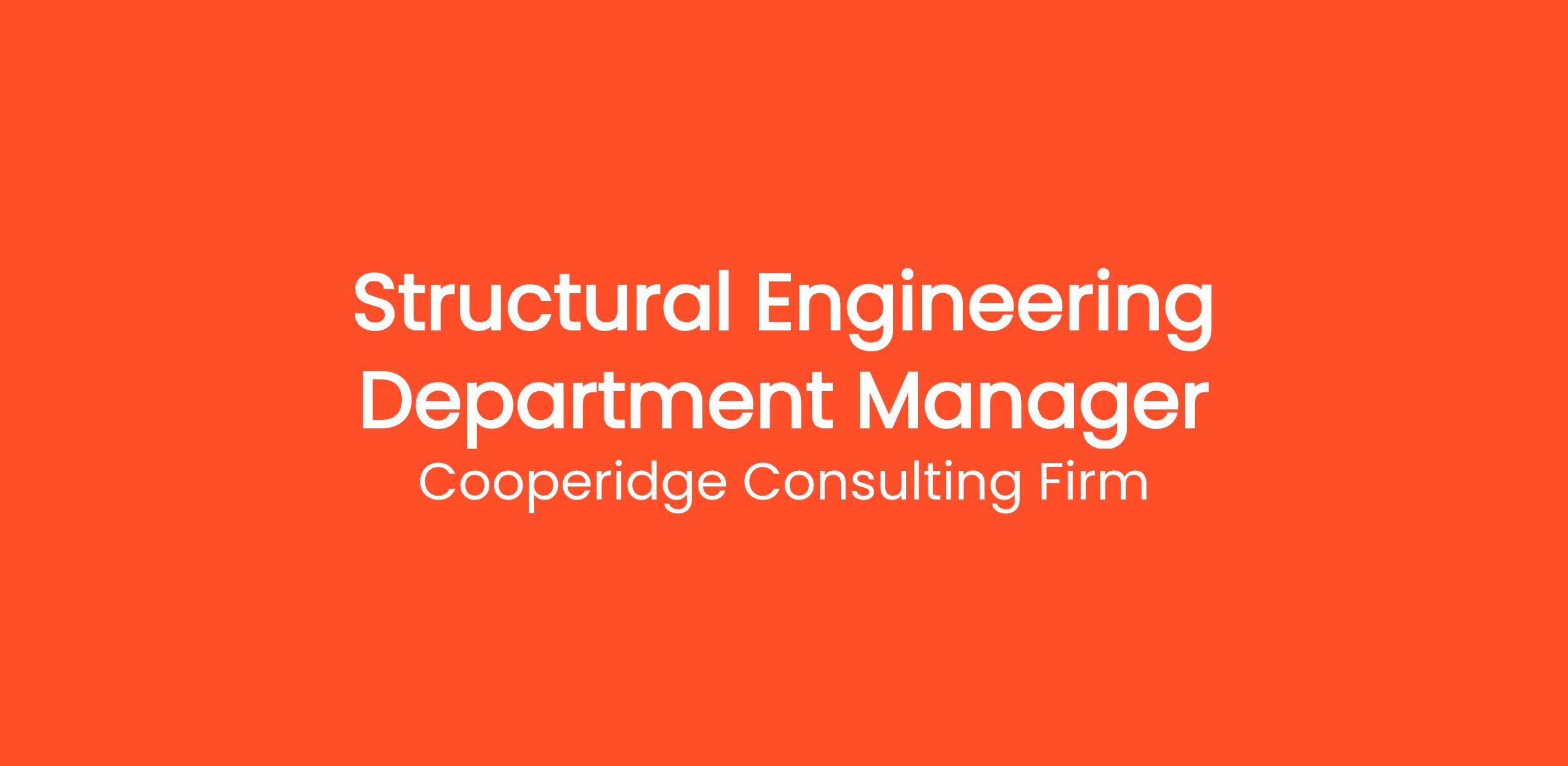 Cooperidge Consulting Firm is seeking a Structural Engineering Department Manager for a top Industrial Engineering & Design-Build client.