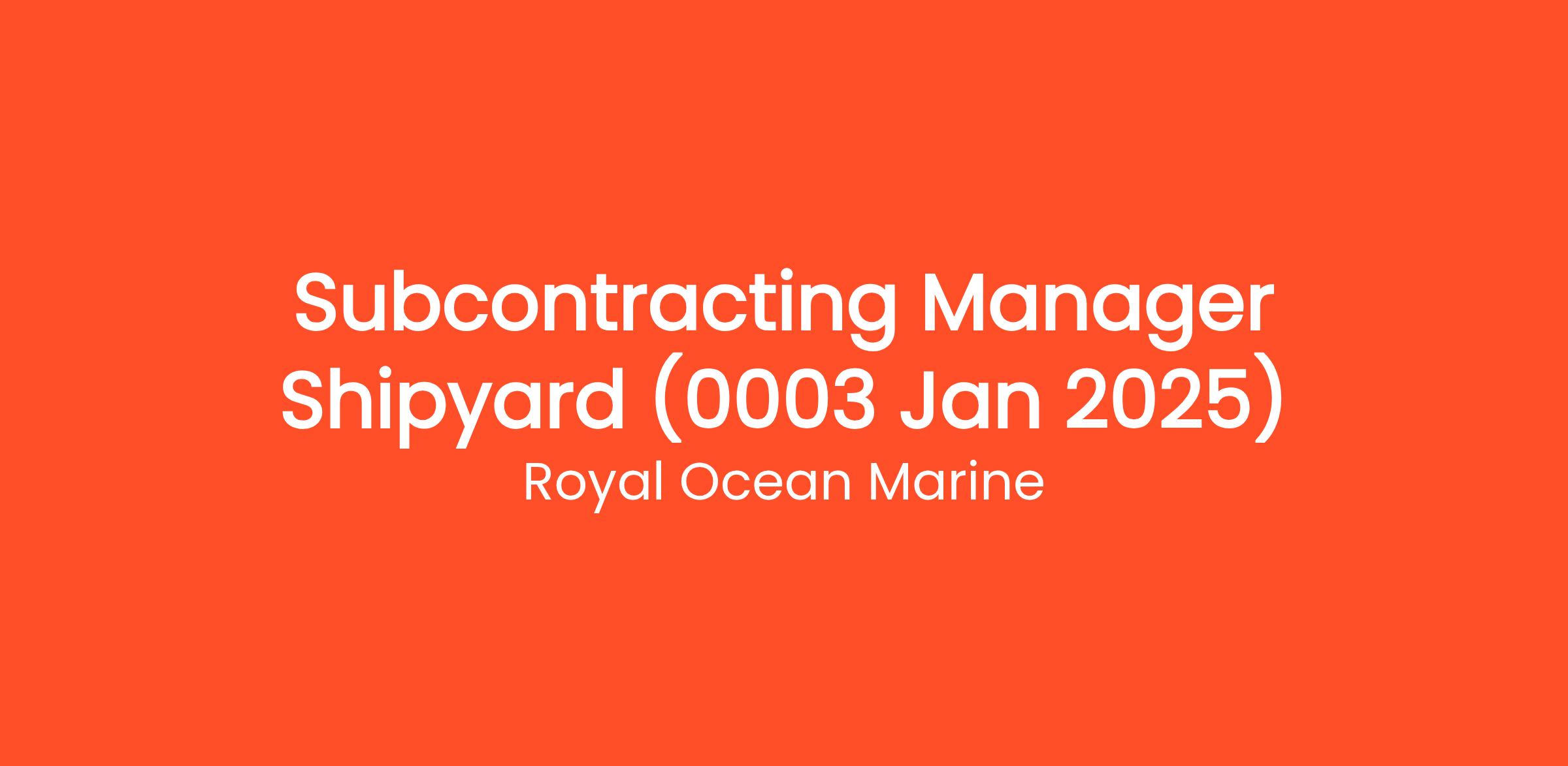 Royal Ocean Marine is looking for a talented and experienced Subcontracting Manager to join our client's shipyard team. In this pivotal role, you will be responsible for managing all subcontracting operations, ensuring that projects meet quality, cost, and time requirements. The ideal candidate will have a strong background in subcontract management within the maritime or shipbuilding industry and possess excellent negotiation and communication skills.