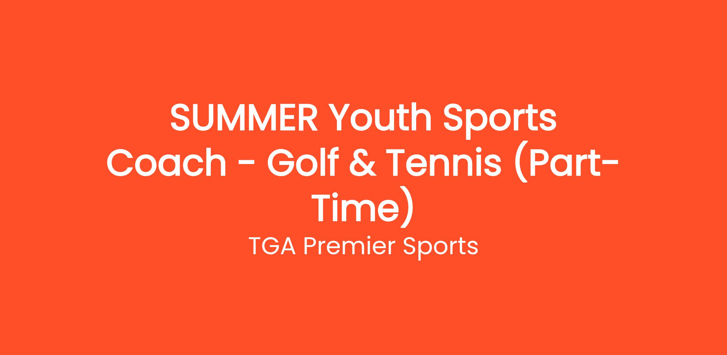 TGA Premier Sports is thrilled to announce an opportunity for a SUMMER Youth Sports Coach - Golf & Tennis (Part-Time)! This position is perfect for individuals passionate about fostering a love for sports among children aged 5-14, specifically in golf and tennis.