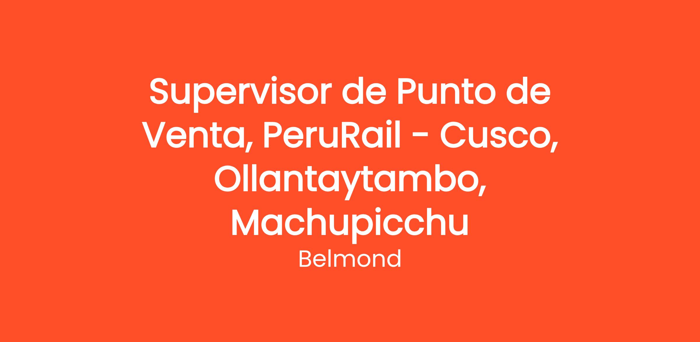 Como supervisor de Punto de Venta en PeruRail serás parte de un equipo que genera resultados extraordinarios para garantizar que nuestros empleados disfruten de tantos momentos memorables como nuestros clientes y pasajeros. Ya sea que se trate de la estrategia de Ventas estar orientado a los resultados y el cumplimiento de objetivos, tú contribuirás a una cultura empresarial sobresaliente, que a su vez se traduce en experiencias exquisitas para los clientes. Si estás buscando desarrollar tus habilidades y ser parte del futuro del lujo, este es tu momento.