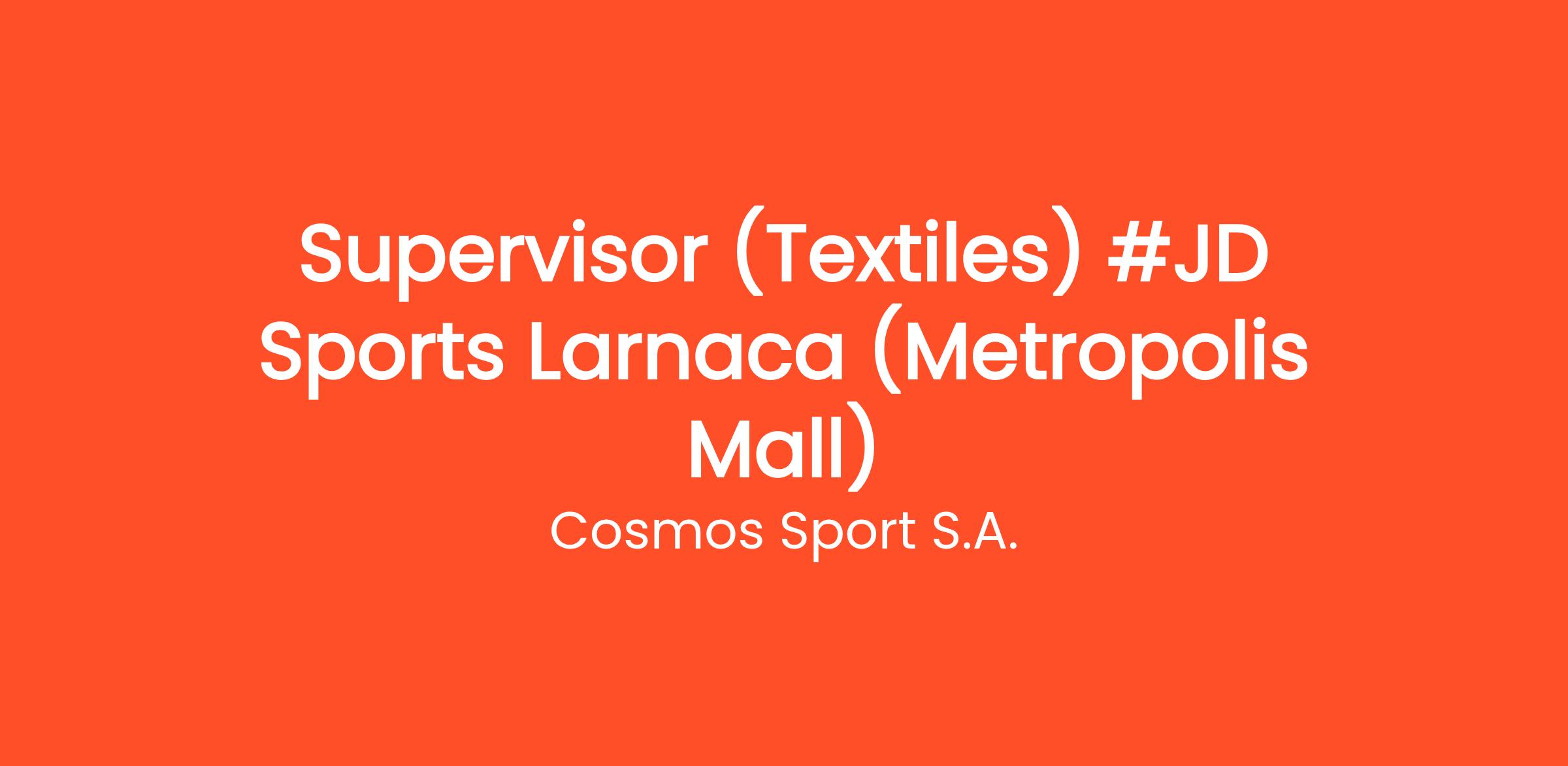 We are looking for a talented and passionate Store Supervisor (Textiles) for our JD Sports Store in Metropolis Mall (Larnaca)!
