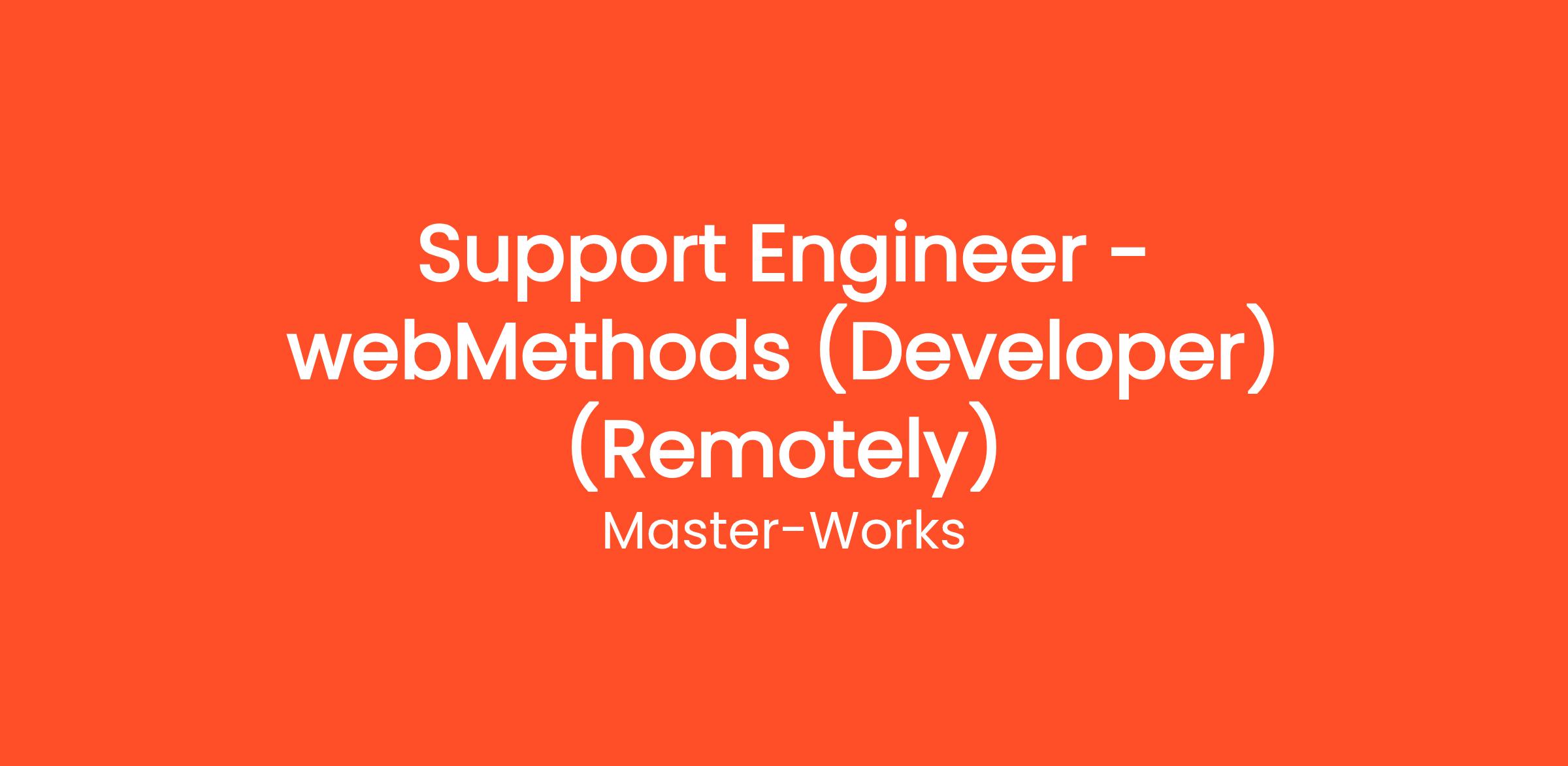 Master-Works is seeking a dedicated and skilled Support Engineer - webMethods (Developer) to join our remote team. In this role, you will be responsible for providing technical support and development expertise for our webMethods integration solutions. You will collaborate with clients and internal teams to troubleshoot issues, enhance existing systems, and implement effective integration solutions that meet business requirements.