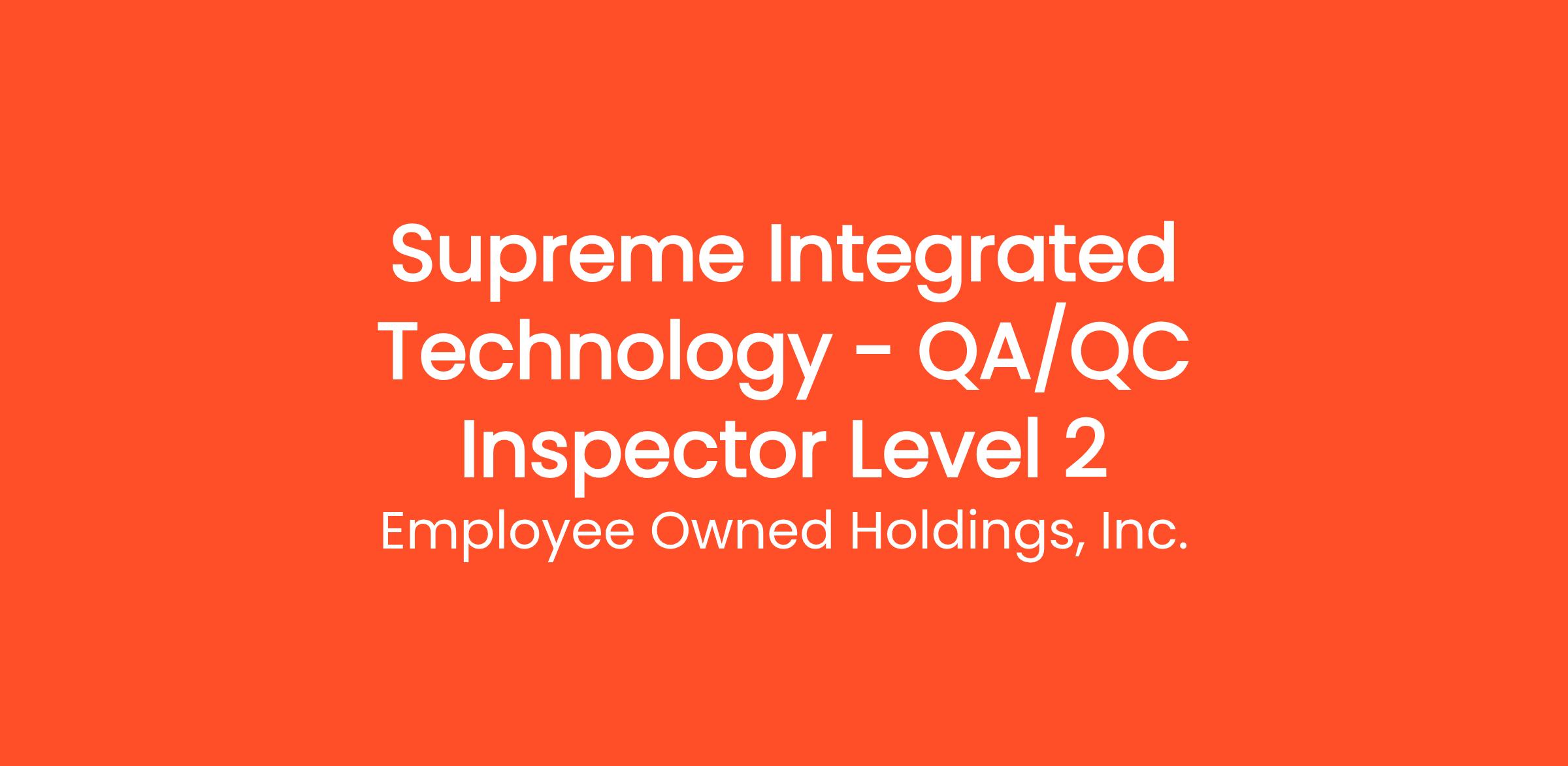 The QA/QC Inspector Level 2 is responsible for In-process, Receipt, and Source Inspections and for ensuring the quality of materials used in products, the quality of workmanship and compliance with specifications and customer requirements.